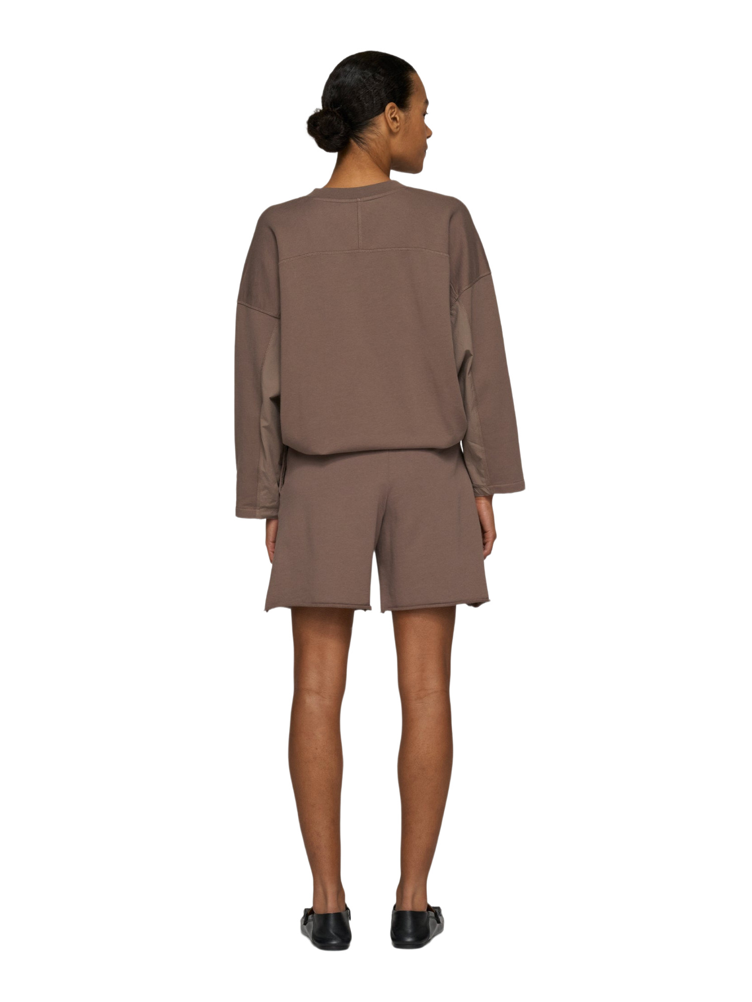 Die Shorts sind aus GOTS-zertifiziertem Bio-Baumwollfleece gefertigt, was sie besonders weich und angenehm auf der Haut macht. Der elastische Gummizugbund sorgt für eine perfekte Passform, während der stylische Gürtel mit Doppel-D-Verschluss nicht nur praktisch ist, sondern auch einen modischen Akzent setzt.