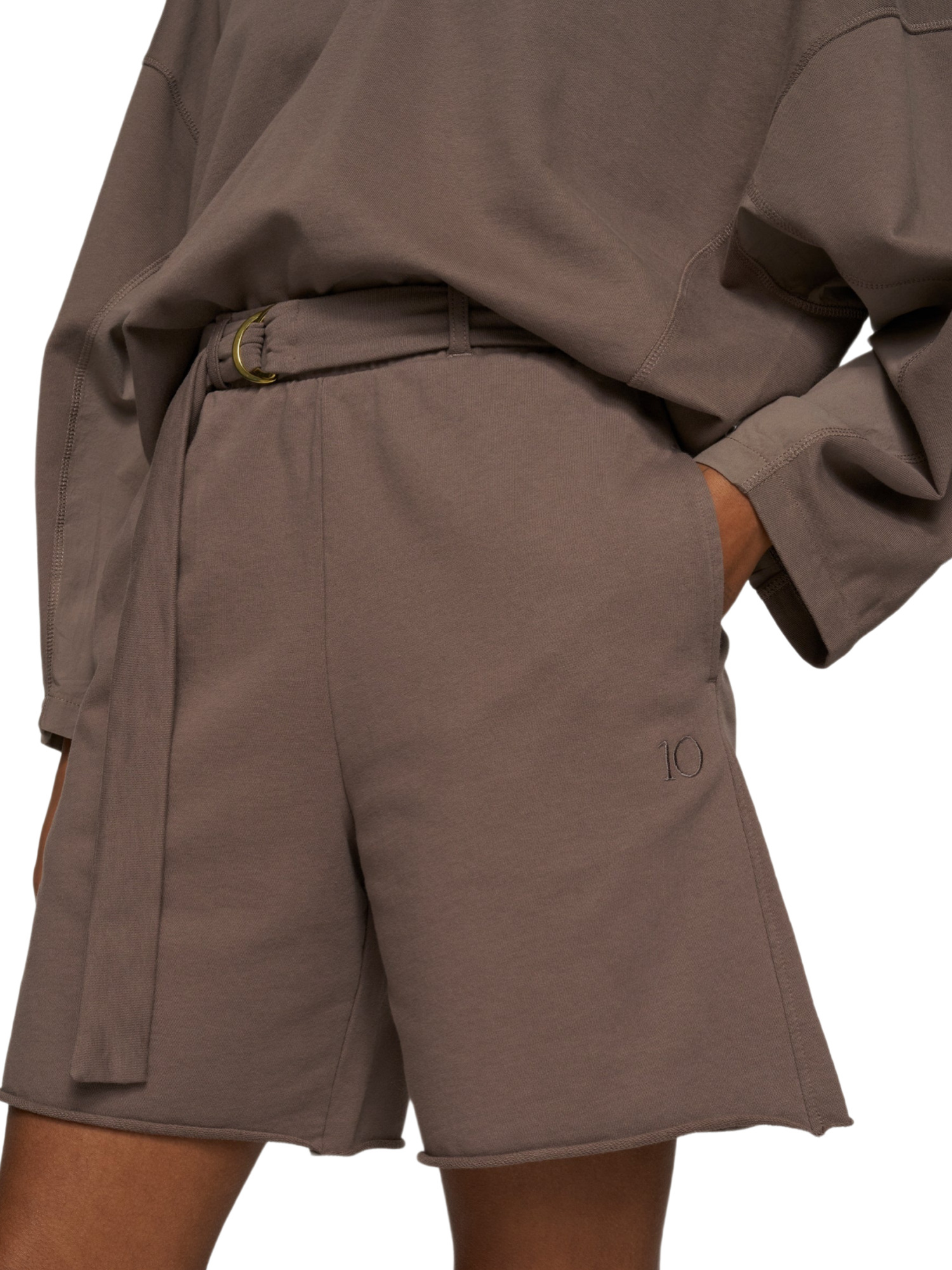 Mit ihren praktischen Eingrifftaschen und der dekorativen Fake-Gesäßtasche bieten die Shorts nicht nur Platz für Deine kleinen Alltagsgegenstände, sondern sehen auch noch super aus. Die ungesäumten Abschlüsse geben den Shorts einen lässigen Touch, und die dezente „10“-Monogrammstickerei unter der linken Tasche zeigt Liebe zum Detail.