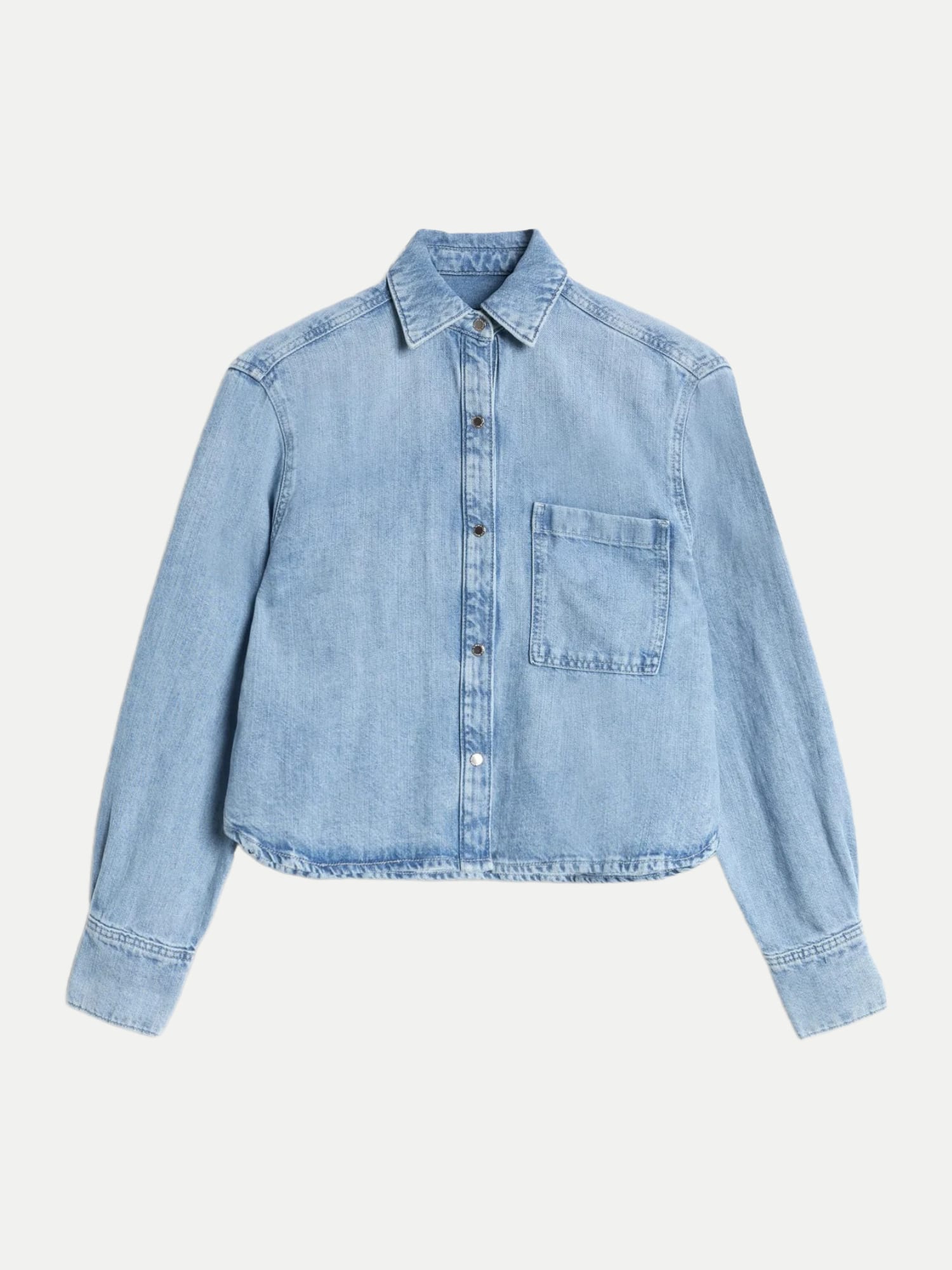 Die helle Waschung und das leicht kastenförmige Modell verleihen dem Hemd einen modernen Touch, während es gleichzeitig unglaublich bequem sitzt. Die lockere Passform fühlt sich an, als hättest Du es schon ewig getragen. Eine Brusttasche, ein spitzer Kragen und eine praktische Druckknopfleiste vorne runden das Design ab. Lange Ärmel mit Manschetten bieten zusätzlichen Stil und Funktionalität.