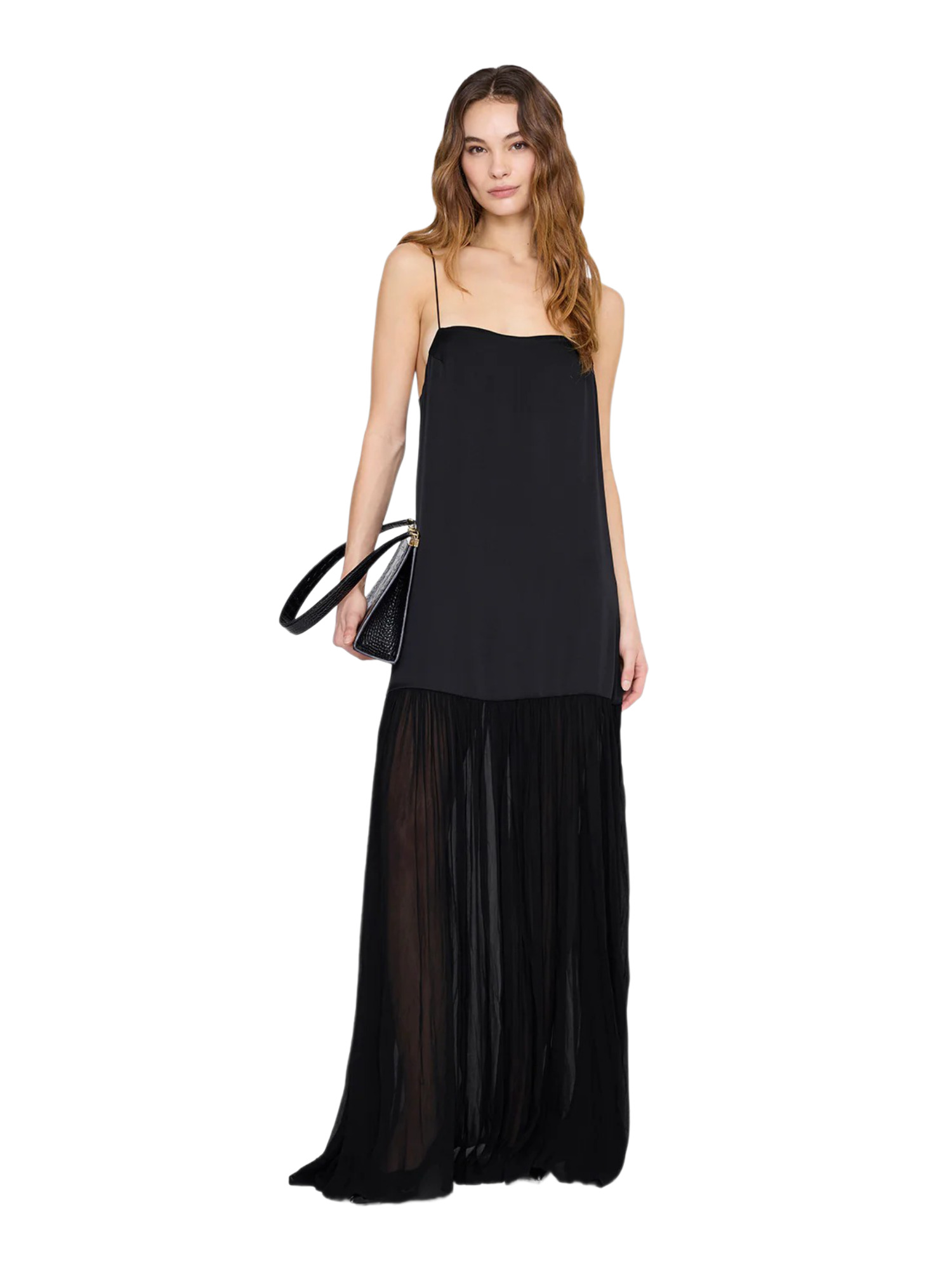 Das Oberteil aus feinstem Satin schmiegt sich sanft an Deine Haut, während der bodenlange Rock in leicht transparenter Optik für einen Hauch von Geheimnis sorgt. Die lockere Passform umspielt geschickt Deine Figur und bietet optimalen Tragekomfort, ohne dabei an Stil einzubüßen.