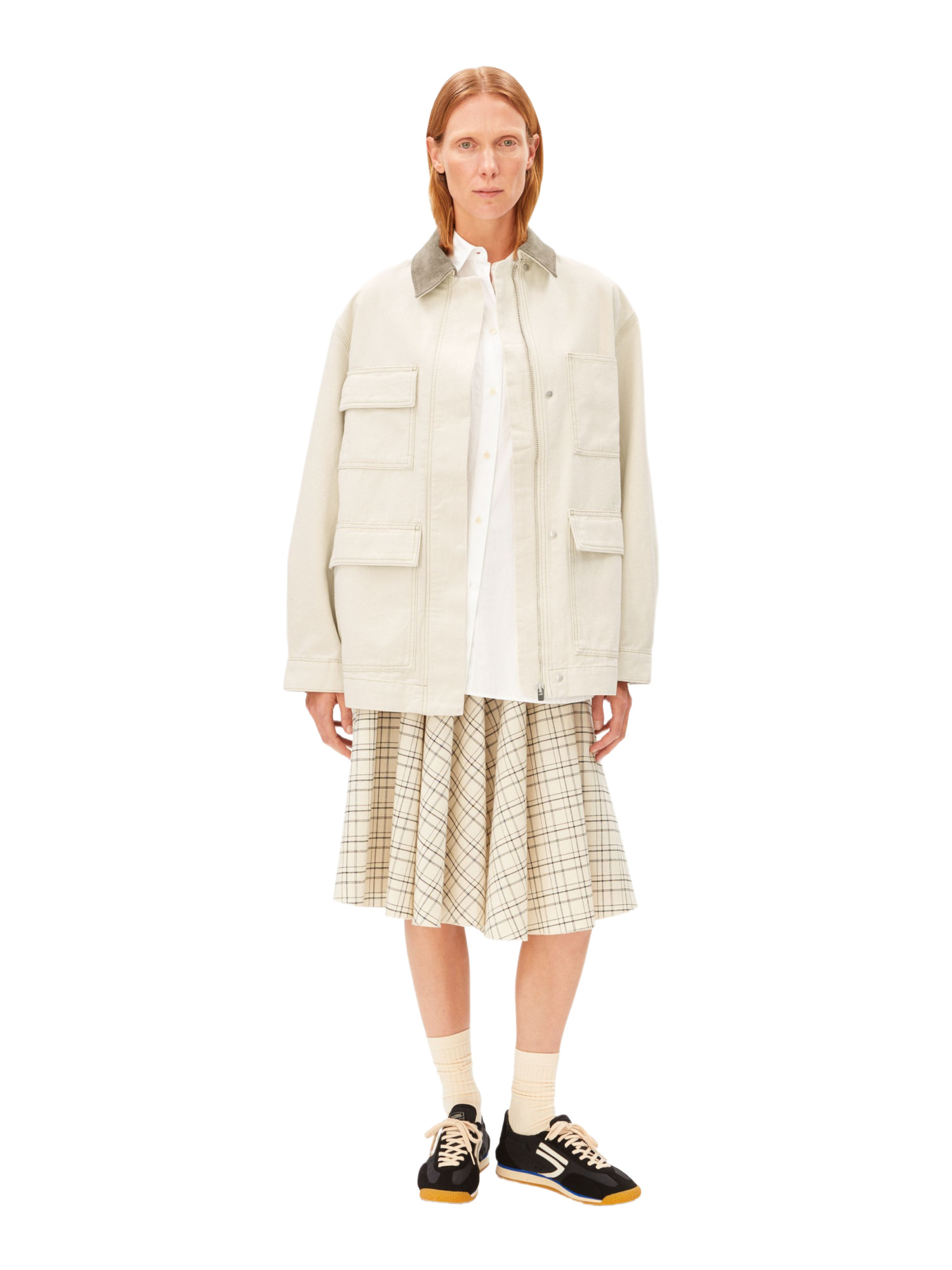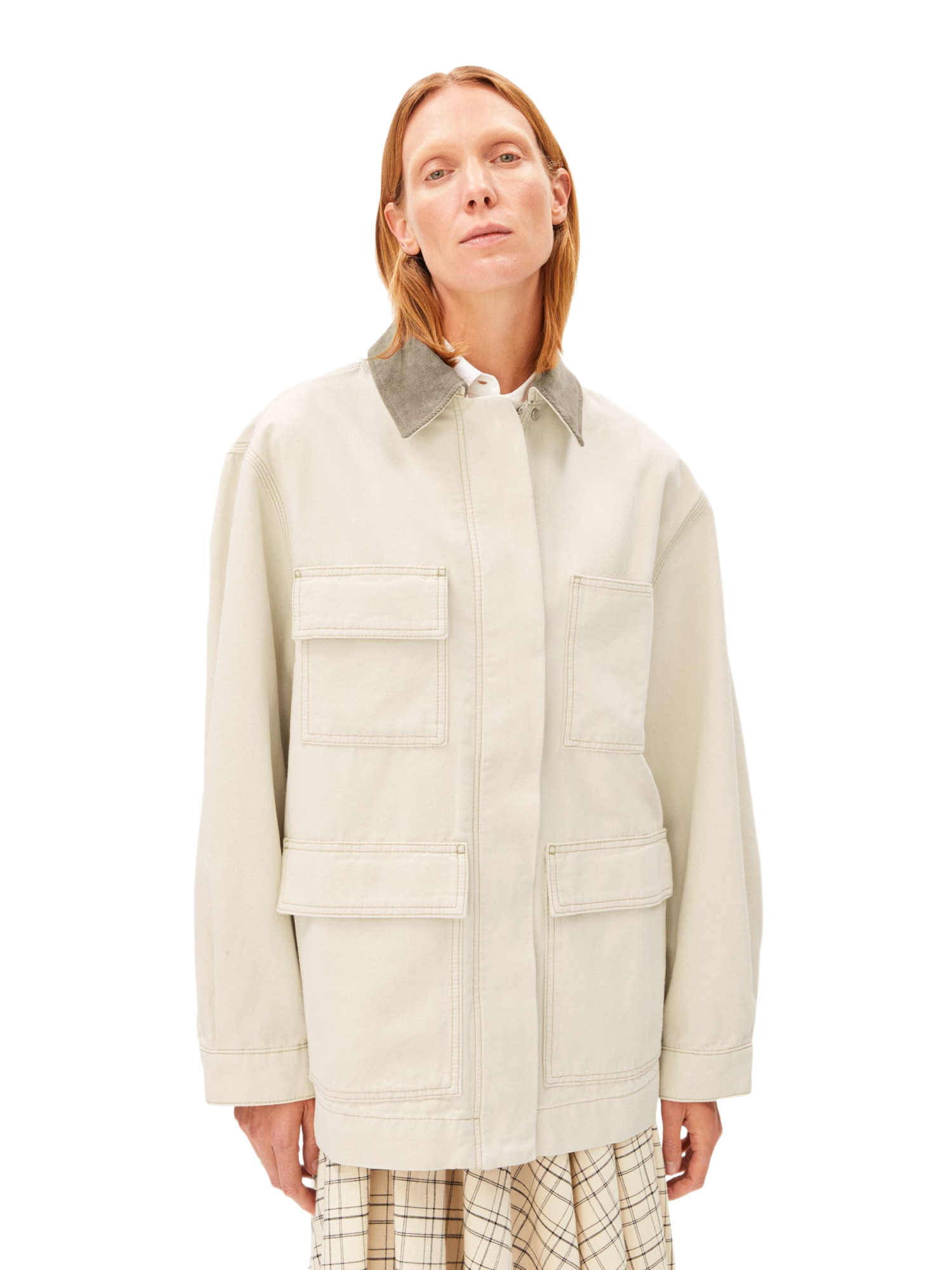 Der Oversized Fit bietet Dir viel Bewegungsfreiheit und einen lässigen Look. Mit einer Länge von 77 cm und überschnittenen Schultern passt sich die Jacke perfekt Deinem Körper an und lässt sich hervorragend zu verschiedenen Outfits kombinieren. Der Hemdkragen und die aufgesetzten Taschen unterstreichen den klassischen Workwear-Stil und bieten praktischen Stauraum für Deine Essentials.