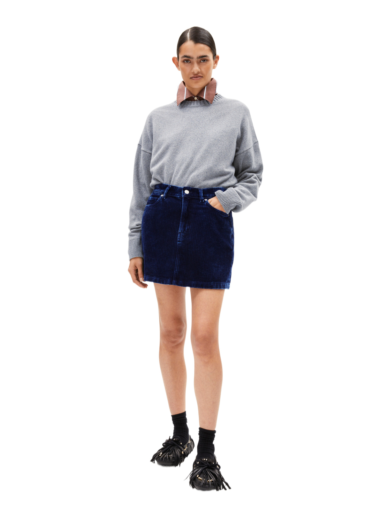 Der AACUMERI zeichnet sich durch seinen strukturierten Cordstoff aus, der ihm eine einzigartige Textur verleiht. Der gerade Schnitt und die mittlere Bundhöhe sorgen für einen komfortablen und schmeichelhaften Sitz, der Deine Figur perfekt zur Geltung bringt. Mit seiner kurzen Länge ist dieser Rock ideal für warme Tage oder für ein schickes Abendoutfit.