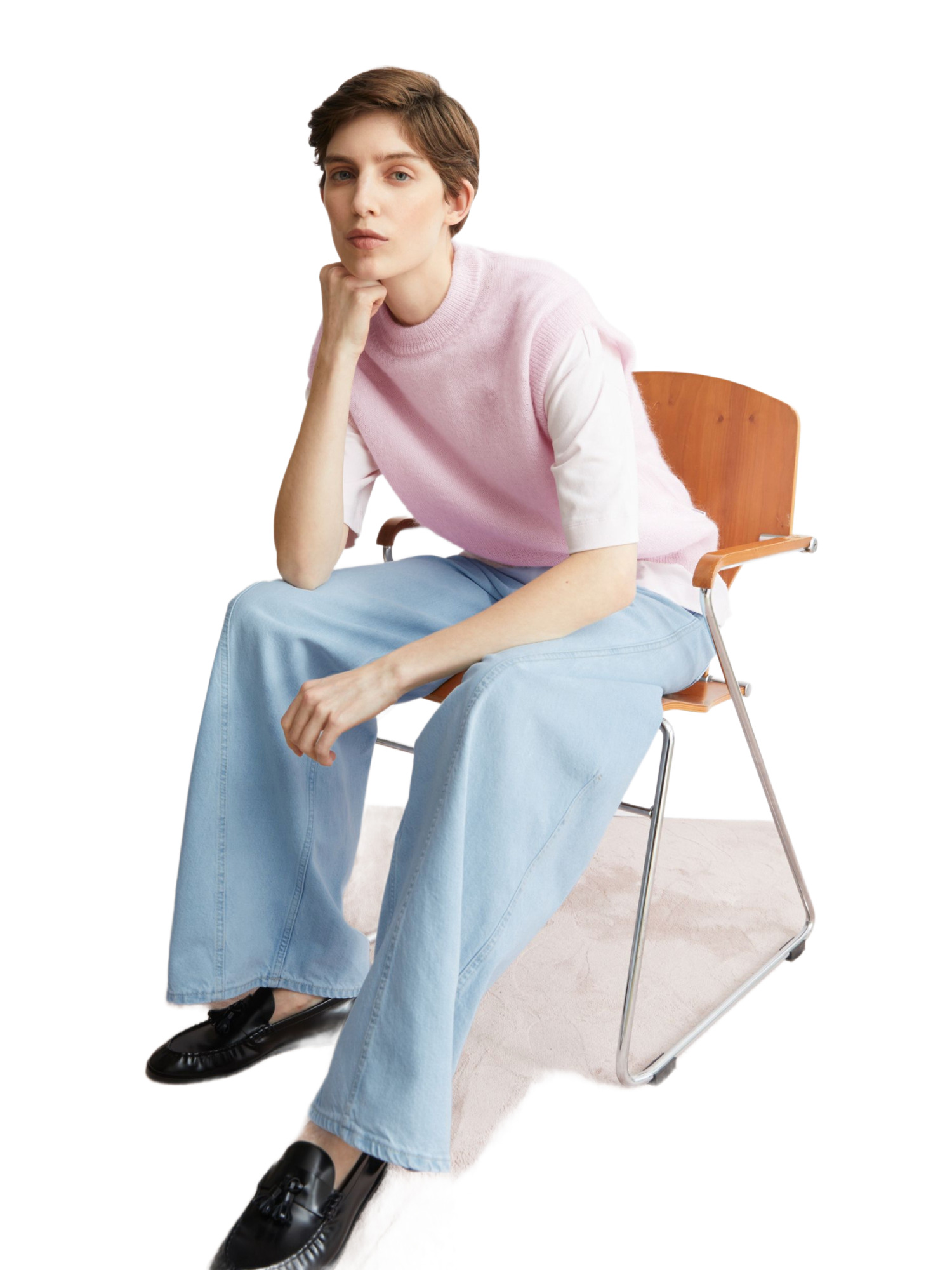 Die Weste ist aus 44% Lyocell, 44% Mohair und 12% Bio-Wolle gefertigt, was sie nicht nur besonders nachhaltig, sondern auch unglaublich weich und bequem macht. Das Material sorgt für eine optimale Temperaturregulierung, sodass du dich den ganzen Tag über wohl fühlst.