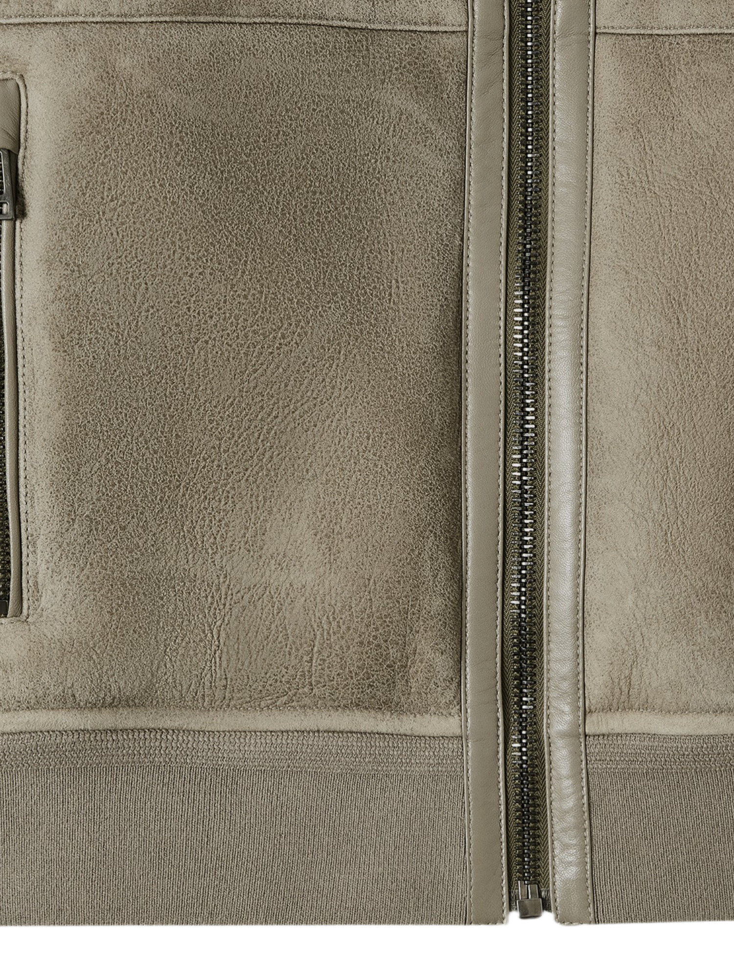 Die Lederjacke Trace zeichnet sich durch ihr rustikales, halbgeöltes Finish aus, das ihr einen unverwechselbaren Charakter verleiht. Die Bomberjacken-Silhouette zusammen mit dem wandelbaren Lammfellkragen ermöglicht vielseitige Styling-Optionen. Ob lässig über einem T-Shirt oder elegant über einem Hemd getragen, diese Jacke passt sich deinem Stil an.
