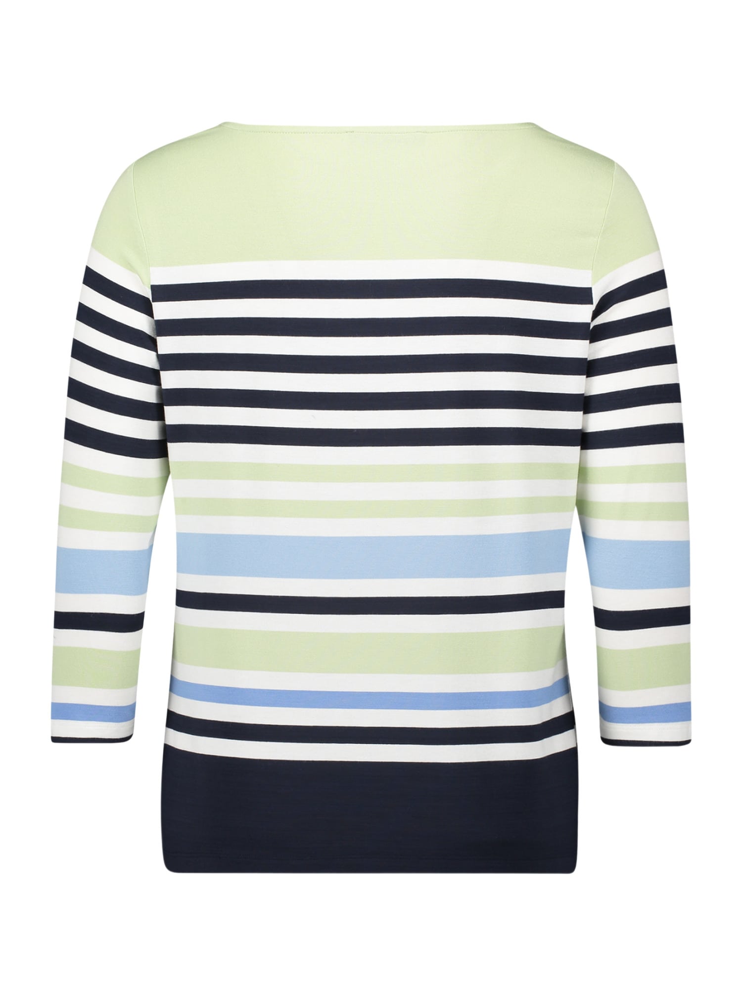 Das zeitlose Streifenmuster verleiht dem Shirt einen frischen und lebendigen Look. Es lässt sich hervorragend mit verschiedenen Outfits kombinieren, von Jeans bis hin zu eleganteren Hosen oder Röcken. Die Länge von 62 cm sorgt dafür, dass das Shirt in einer schönen Linie fällt und Deine Figur optimal zur Geltung bringt.
