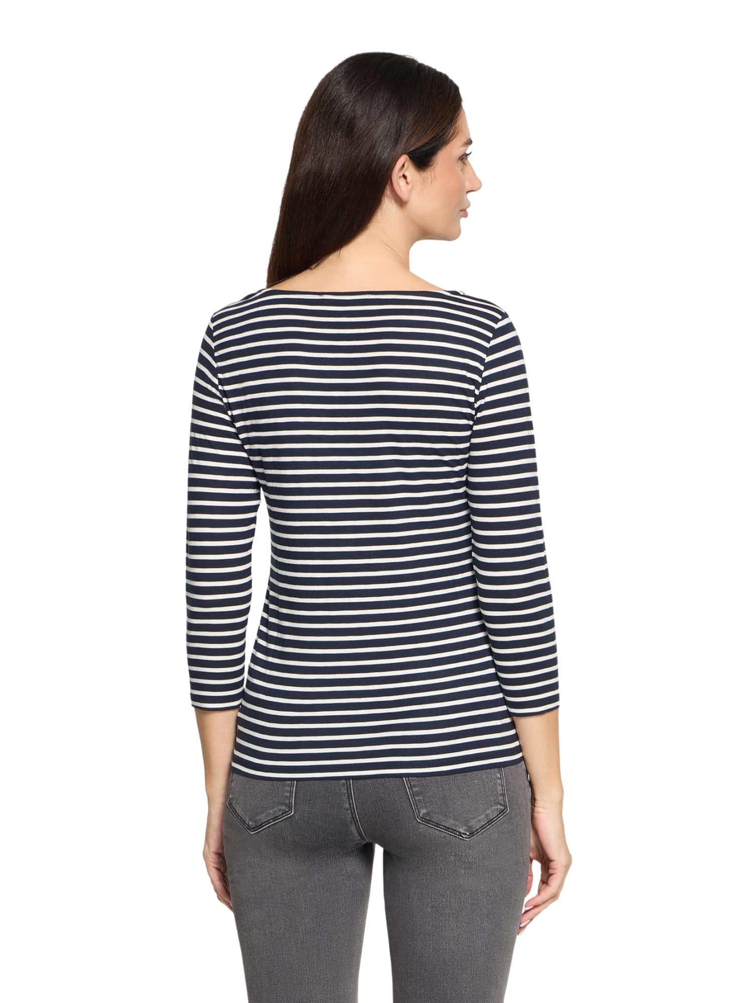 Freust Du Dich auf ein Shirt, das sowohl bequem als auch schick ist? Das Shirt mit U-Boot-Ausschnitt von Betty Barclay könnte genau das Richtige für Dich sein! Mit seinem zeitlosen Streifenmuster und dem eleganten U-Boot-Ausschnitt bietet dieses Shirt eine perfekte Mischung aus klassischem Design und modernem Flair.