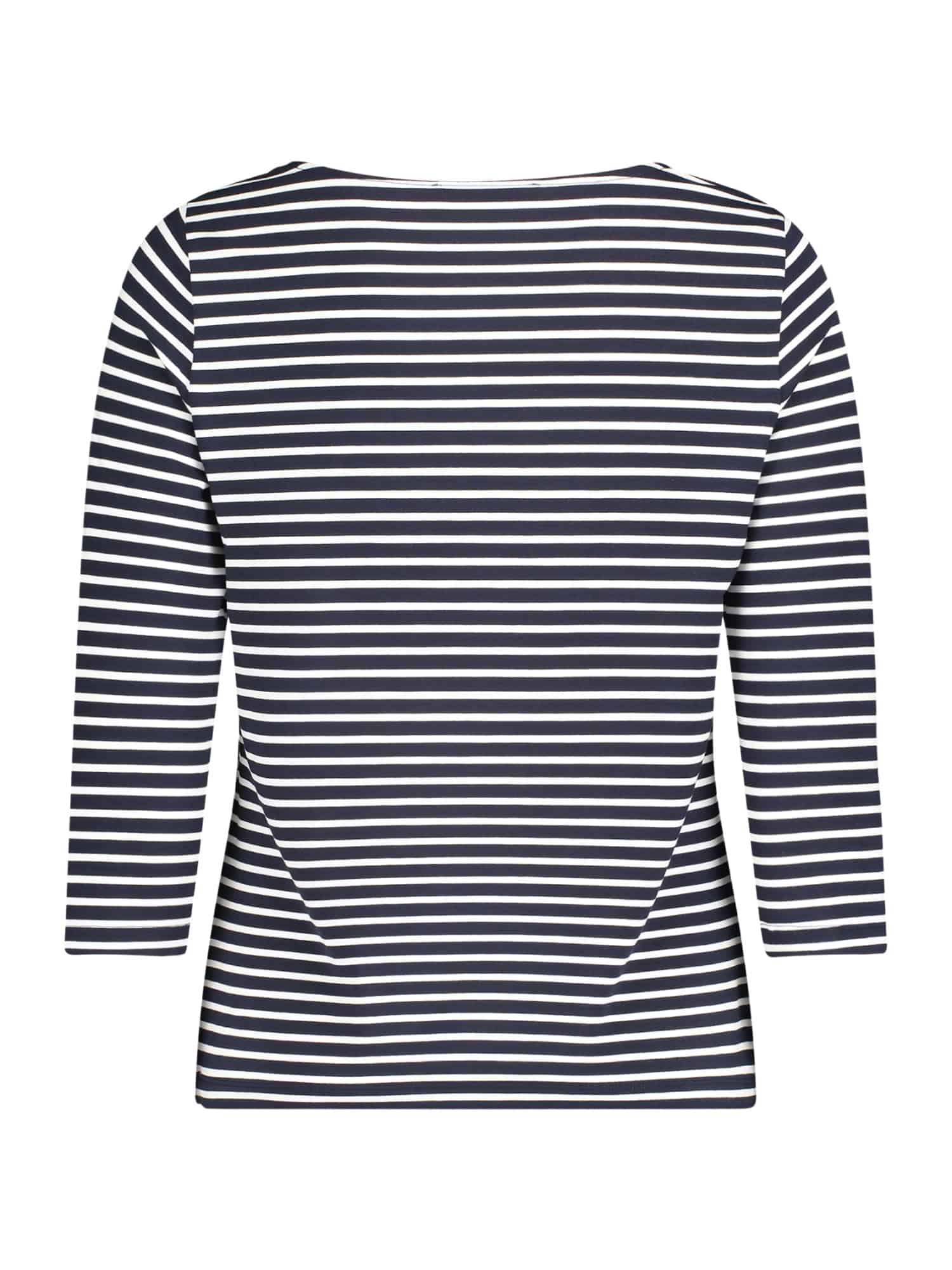 Dieses taillierte Shirt schmeichelt Deiner Figur und betont Deine Silhouette auf angenehme Weise. Gefertigt aus einem weichen Jersey-Material, das zu 95 % aus Viskose und 5 % Elasthan besteht, verspricht es höchsten Tragekomfort mit genügend Bewegungsfreiheit. Die 3/4-Ärmel runden das Design ab und machen es zu einem idealen Begleiter für jede Jahreszeit.