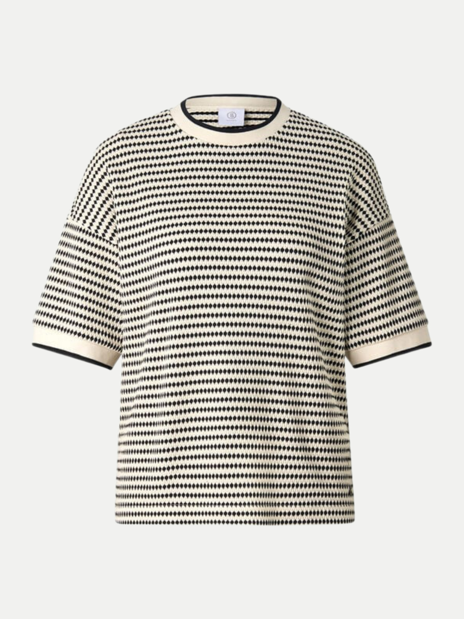 Das Sweatshirt SOPHIE zeichnet sich durch sein einzigartiges, strukturiertes Muster aus, das sofort ins Auge fällt. Die lockere Passform und überschnittenen Schultern bieten Dir Bewegungsfreiheit und einen trendigen, modernen Look. Der klassische Rundhalsausschnitt und die kurzen Ärmel mit gerippten Bündchen runden das Design ab und sorgen für eine schmeichelhafte Silhouette.