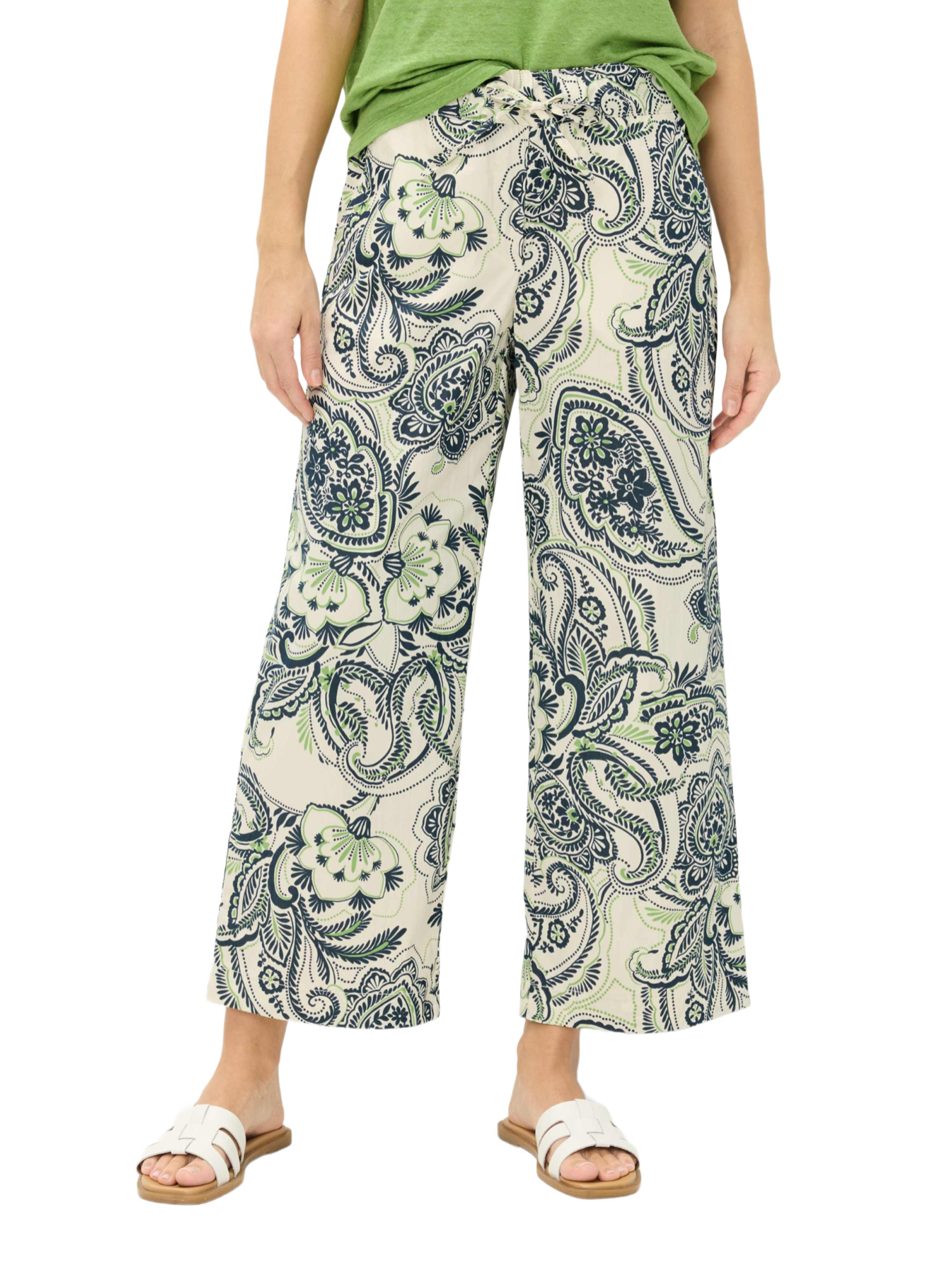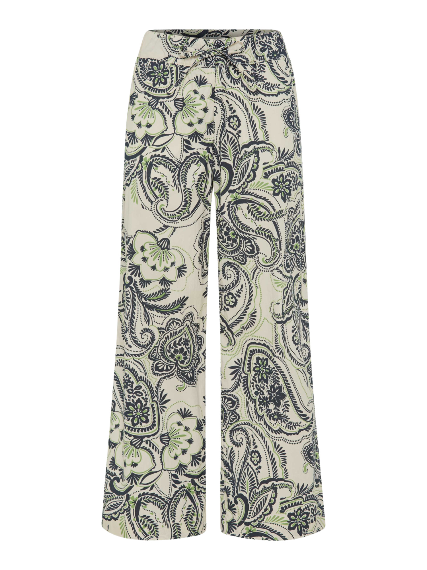 Das Allover-Paisley-Muster verleiht der Hose einen unverwechselbaren Look, der sowohl tagsüber als auch abends toll aussieht. Kombiniere sie mit einem schlichten Top und Sandalen für einen entspannten Nachmittag oder mit einer schicken Bluse und High Heels für einen Abend in der Stadt.