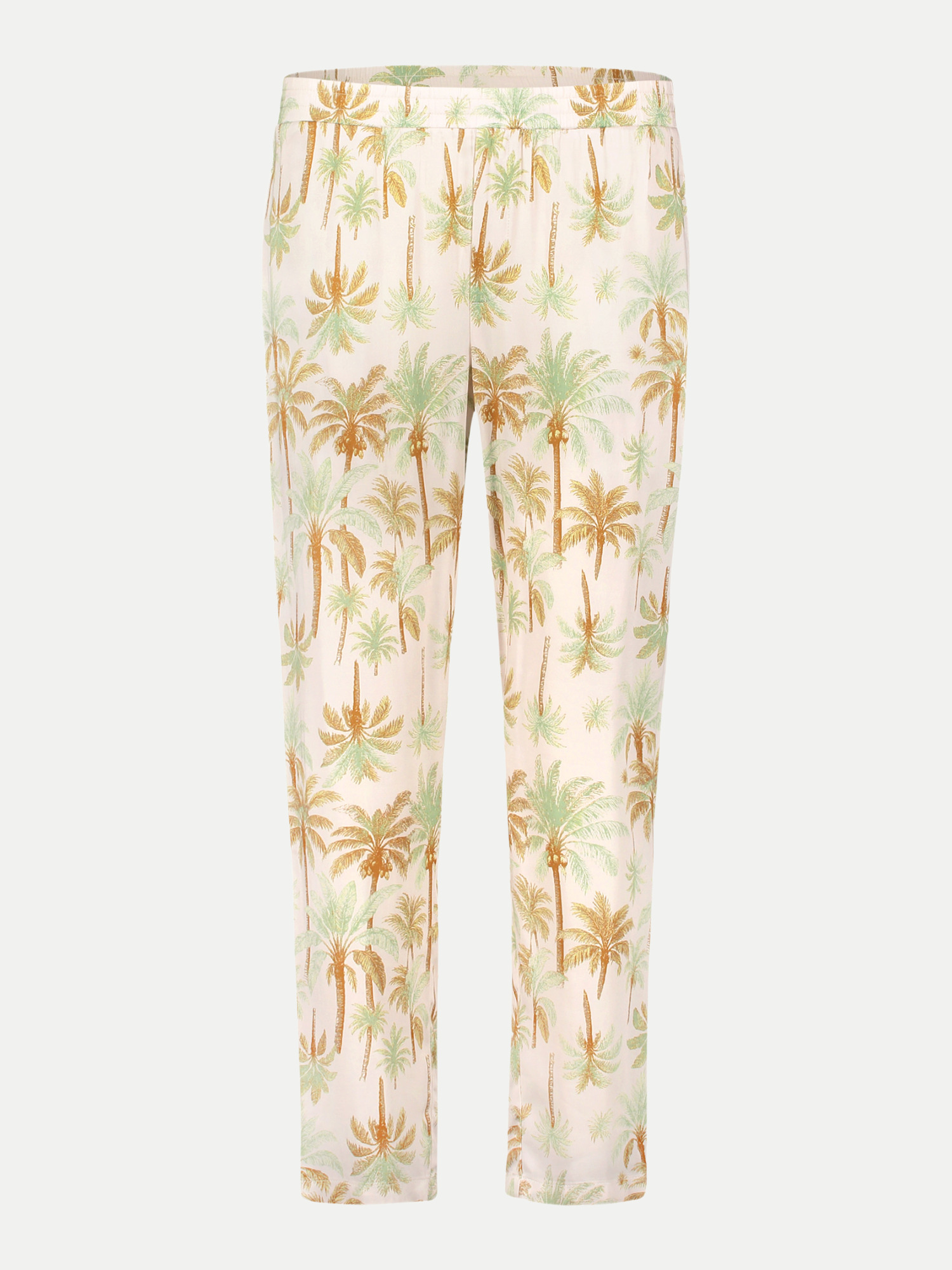 Der Allover-Print mit tropischem Muster macht diese Hose zu einem echten Hingucker. Egal, ob Du sie mit einem einfachen T-Shirt oder einer schicken Bluse kombinierst, sie wird sicherlich viele Blicke auf sich ziehen. Die lange Schrittlänge und die Fußweite von 34 cm umschmeicheln Deine Beine und sorgen für eine elegante Silhouette.
