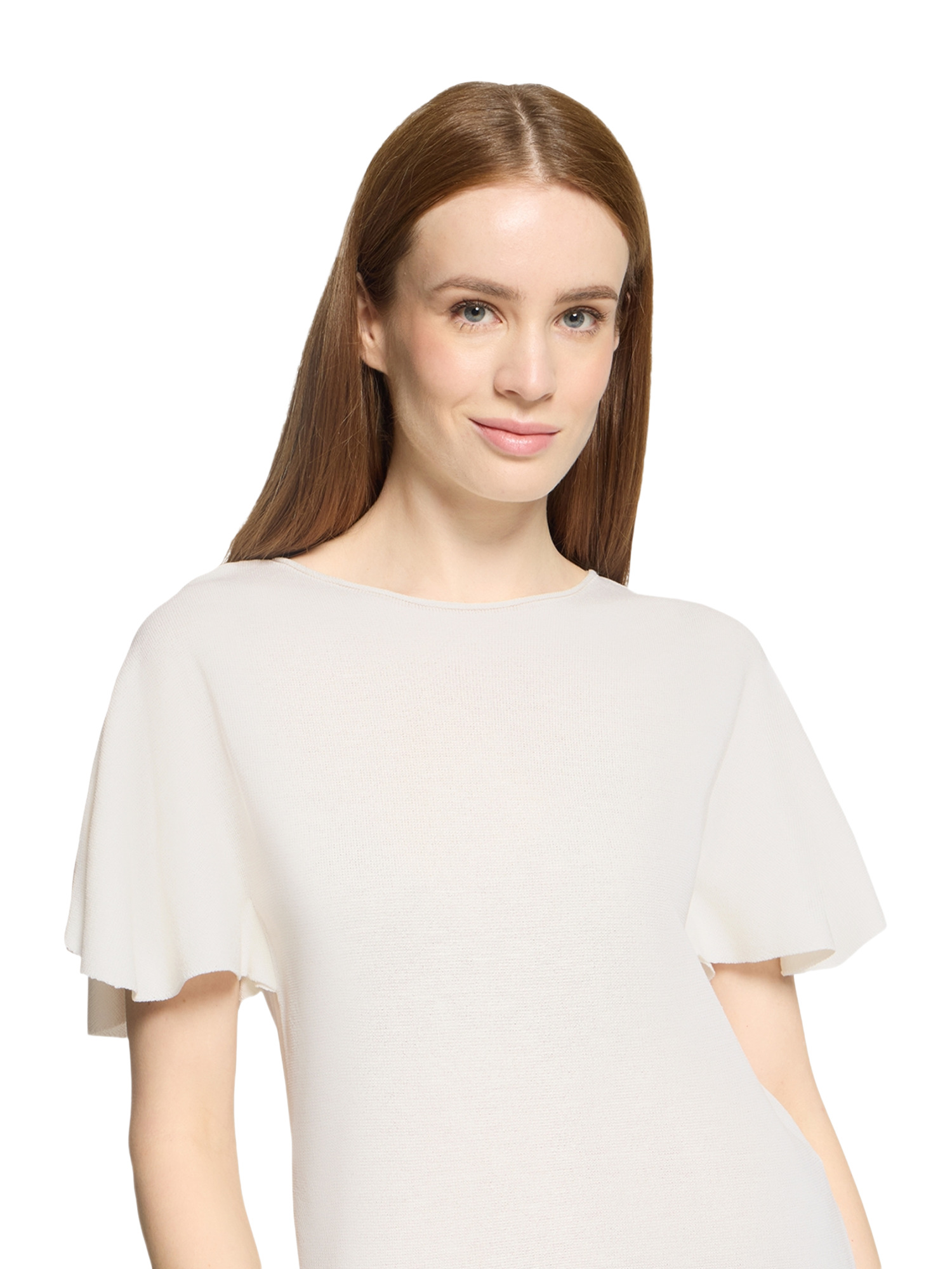Das unifarbene Design macht dieses T-Shirt zu einem vielseitigen Begleiter für zahlreiche Outfits. Ob zur Jeans im Casual-Look oder unter einem Blazer für das Büro – Du bist immer gut angezogen. Der Rundhalskragen und die kurzen Rüschenärmel verleihen dem Shirt eine feminine Note, die Deine weibliche Seite betont.
