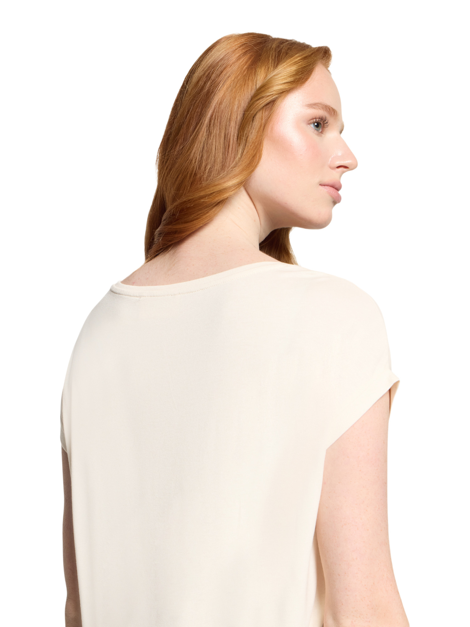 Das T-Shirt zeichnet sich durch seinen lässigen Schnitt aus, der dir optimale Bewegungsfreiheit bietet. Mit einer Gesamtlänge von 62 cm und Halbarm-Ärmeln kombiniert es Bequemlichkeit mit einem Hauch von Eleganz. Der klassische Rundhals-Ausschnitt macht es zum perfekten Begleiter für jegliche Alltagsoutfits.