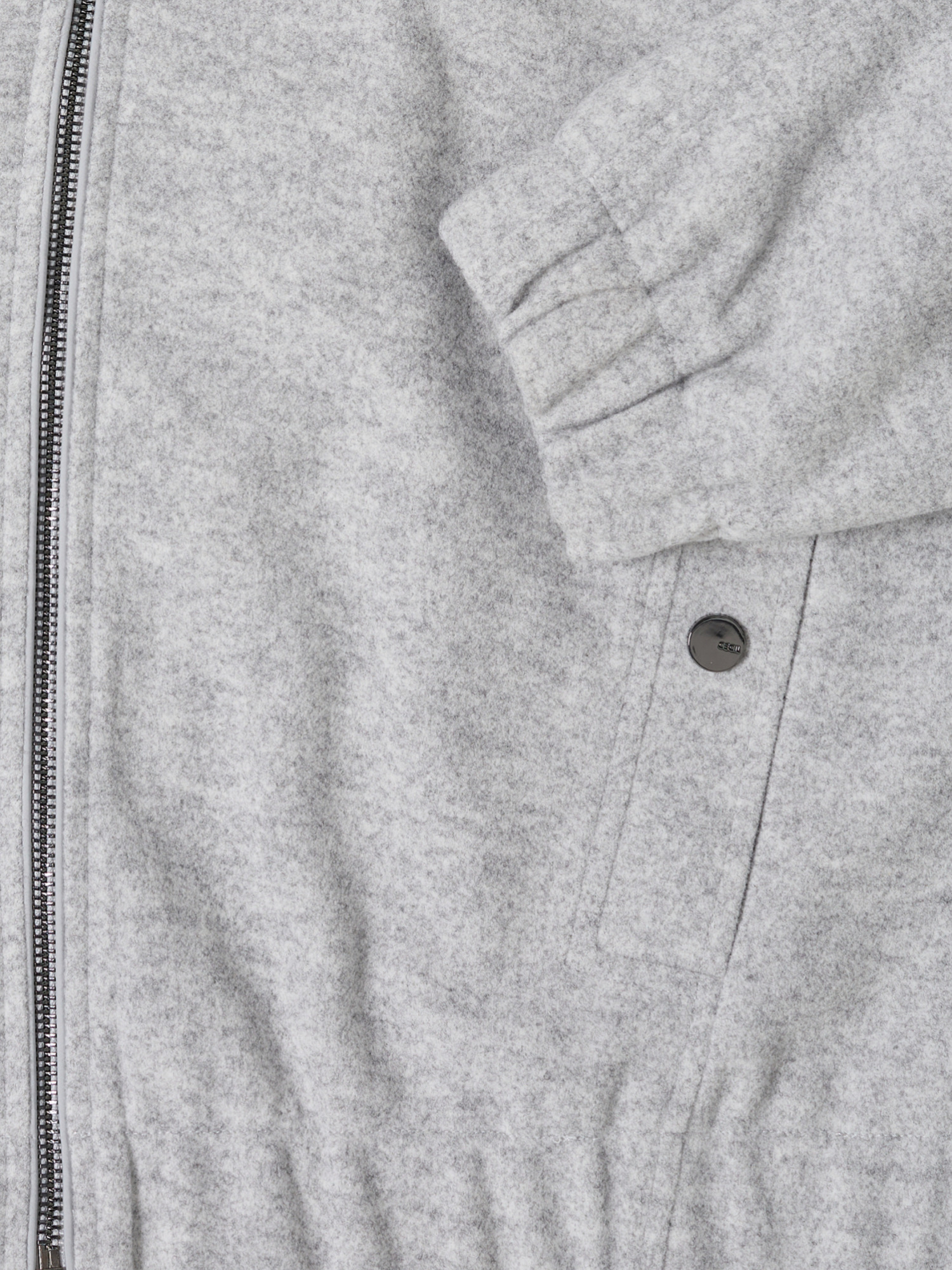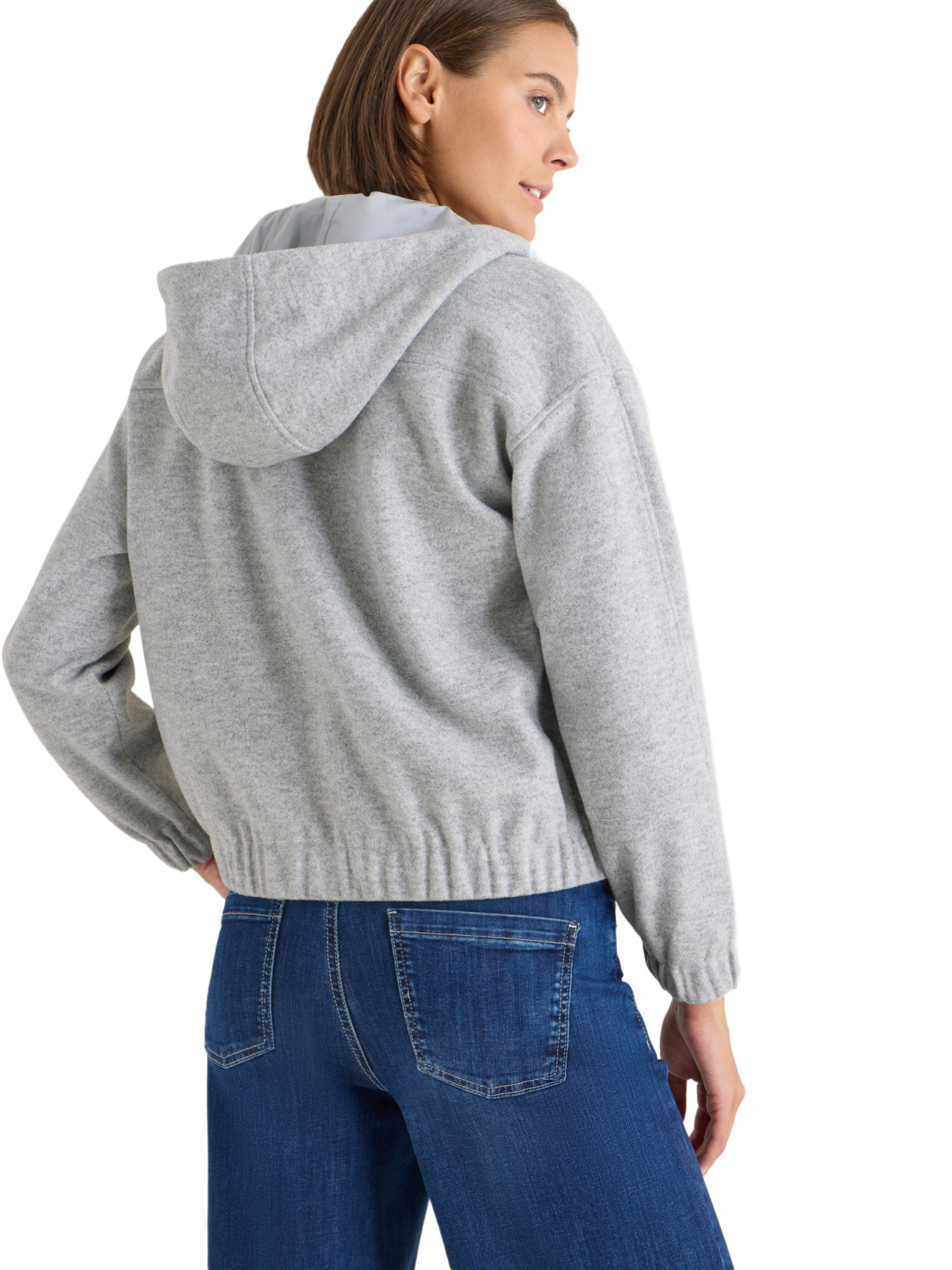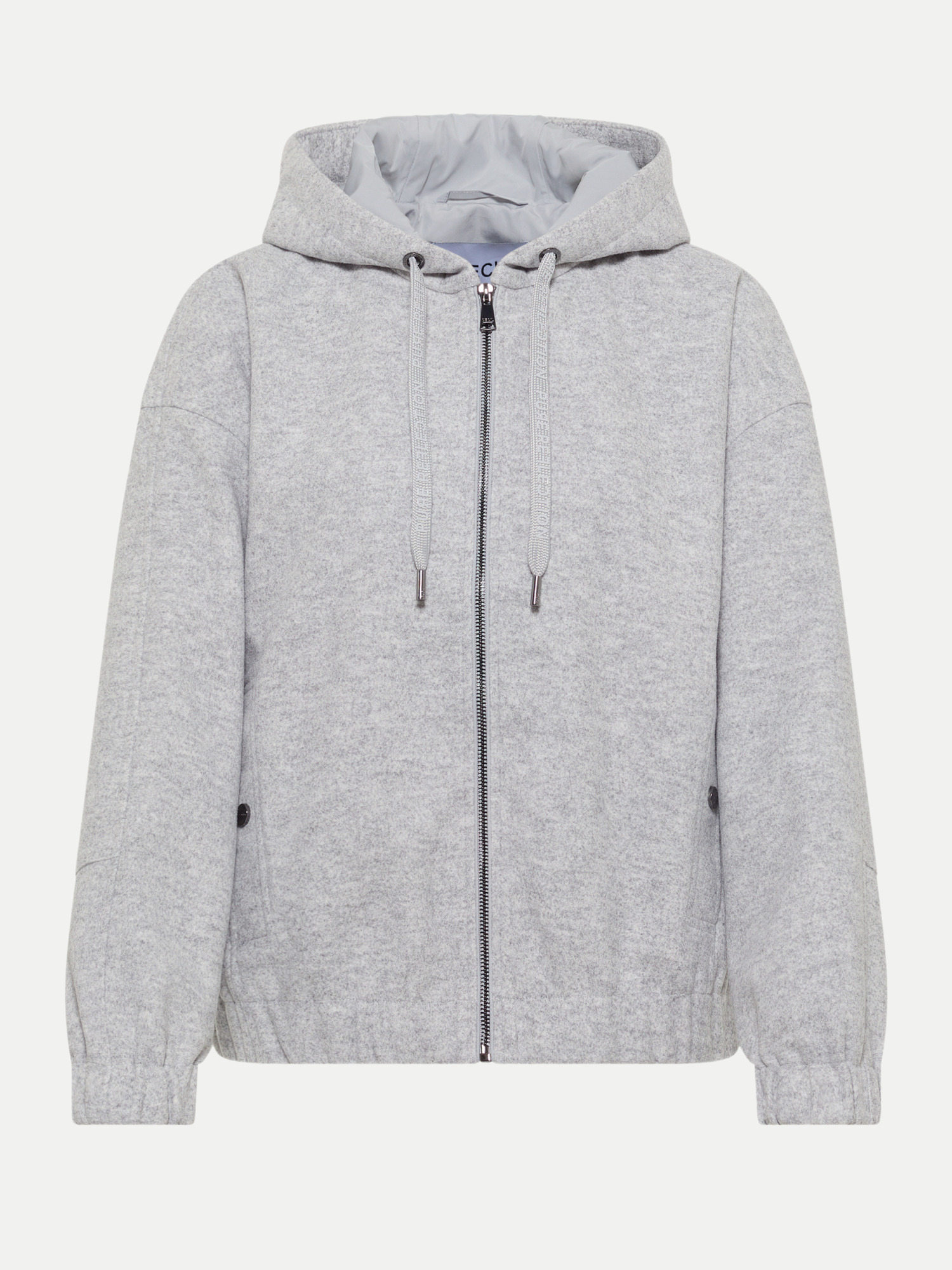 Der Hoodie Blouson zeichnet sich durch seine melierte Wolloptik aus, die nicht nur trendig aussieht, sondern auch eine weiche Haptik bietet. Das Material aus 92% Polyester und 8% Viskose sorgt für ein angenehmes Tragegefühl ohne zu beschweren. Ob auf dem Weg ins Büro oder beim entspannten Stadtbummel, dieser Blouson hält dich warm und sieht dabei super aus.