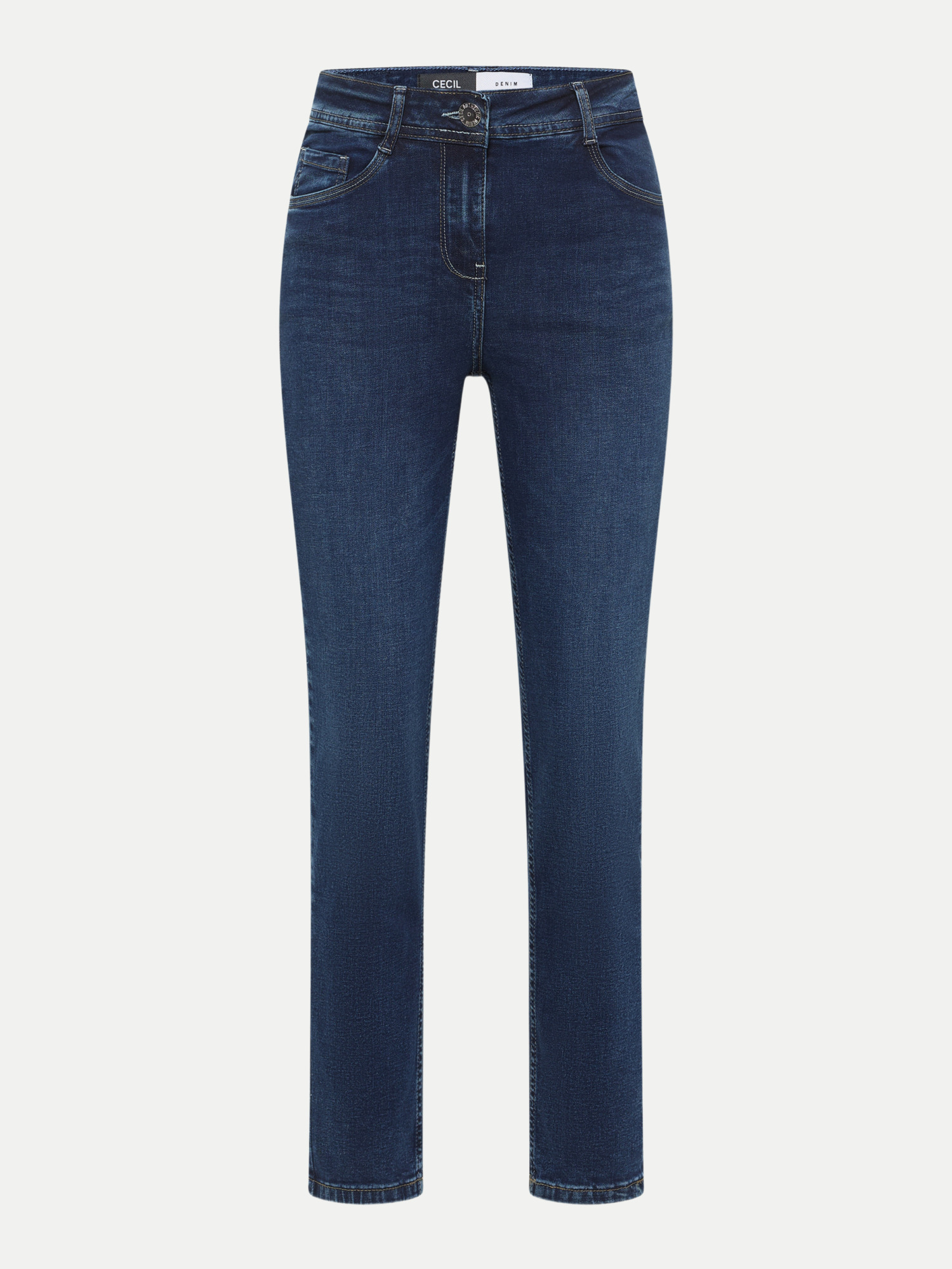 Träumst Du von einer Jeans, die wie angegossen sitzt und dabei super stylisch aussieht? Die Slim-Fit Jeans Style Vicky von CECIL könnte genau das Richtige für Dich sein! Mit ihrem trendigen High-Waist-Schnitt und den schmalen Beinen zaubert sie eine umwerfende Silhouette, die Deine Figur perfekt in Szene setzt.