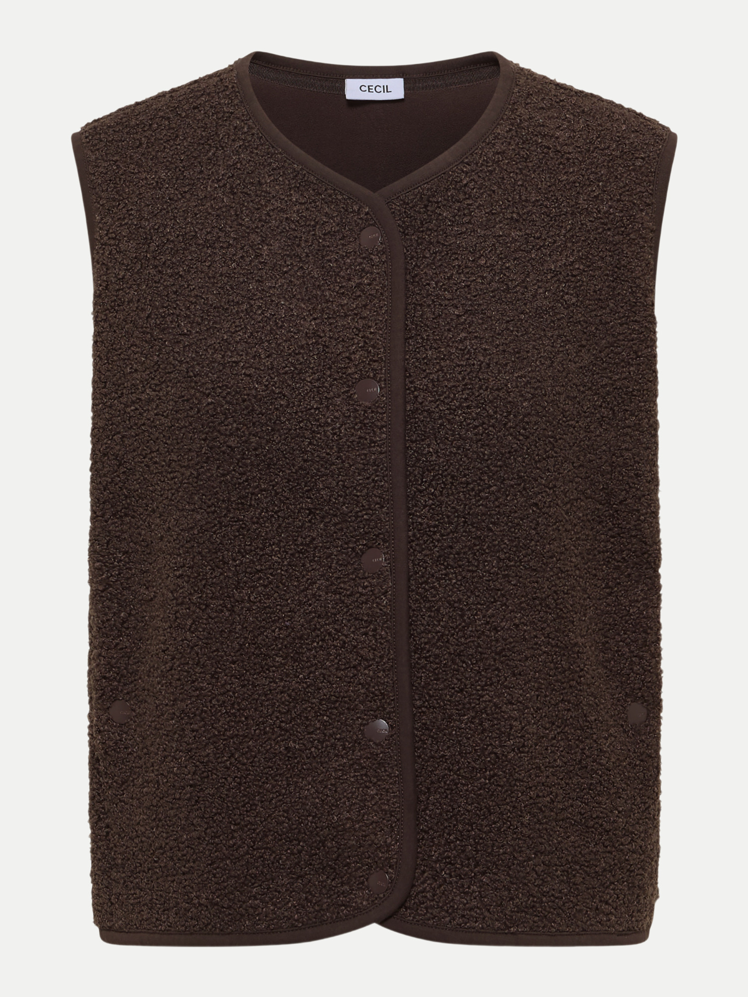 Wenn die Temperaturen fallen, ist es Zeit, Deinem Outfit eine Extraportion Wärme und Stil zu verleihen. Die Weste in Wolloptik von CECIL ist genau das richtige Stück für Deine Garderobe, um beides zu kombinieren. Mit ihrem ärmellosen Design und dem klassischen Rundhals bietet sie vielfältige Kombinationsmöglichkeiten und passt perfekt zu jedem Casual-Look.