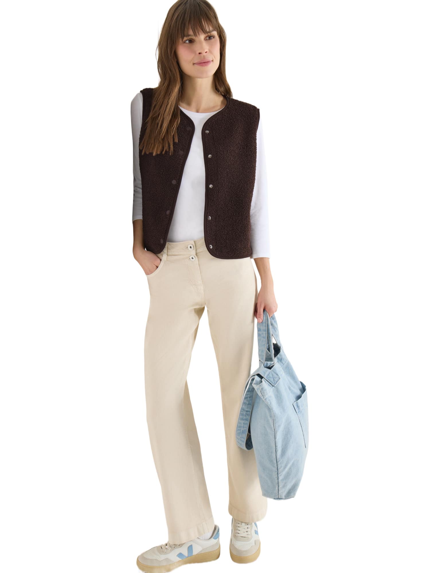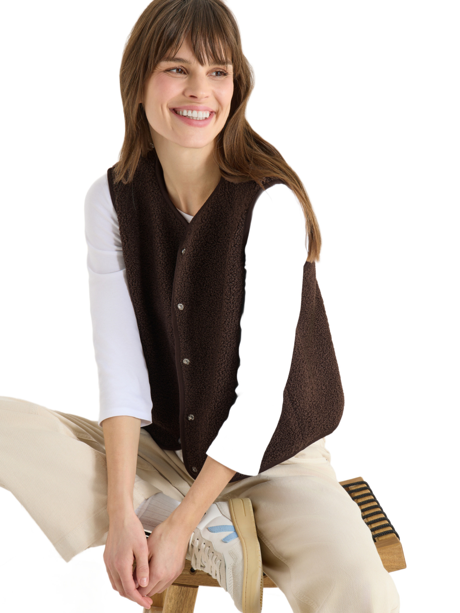 Egal, ob Du einen Spaziergang im Park planst oder ein entspanntes Treffen mit Freunden, die Weste in Wolloptik ist immer eine ausgezeichnete Wahl. Ihr schlichtes, unifarbenes Design macht sie zu einem vielseitigen Begleiter für zahlreiche Outfits. Zudem ist sie ideal, um sie an kühleren Tagen schnell überzuziehen und sofort stilvoll auszusehen.
