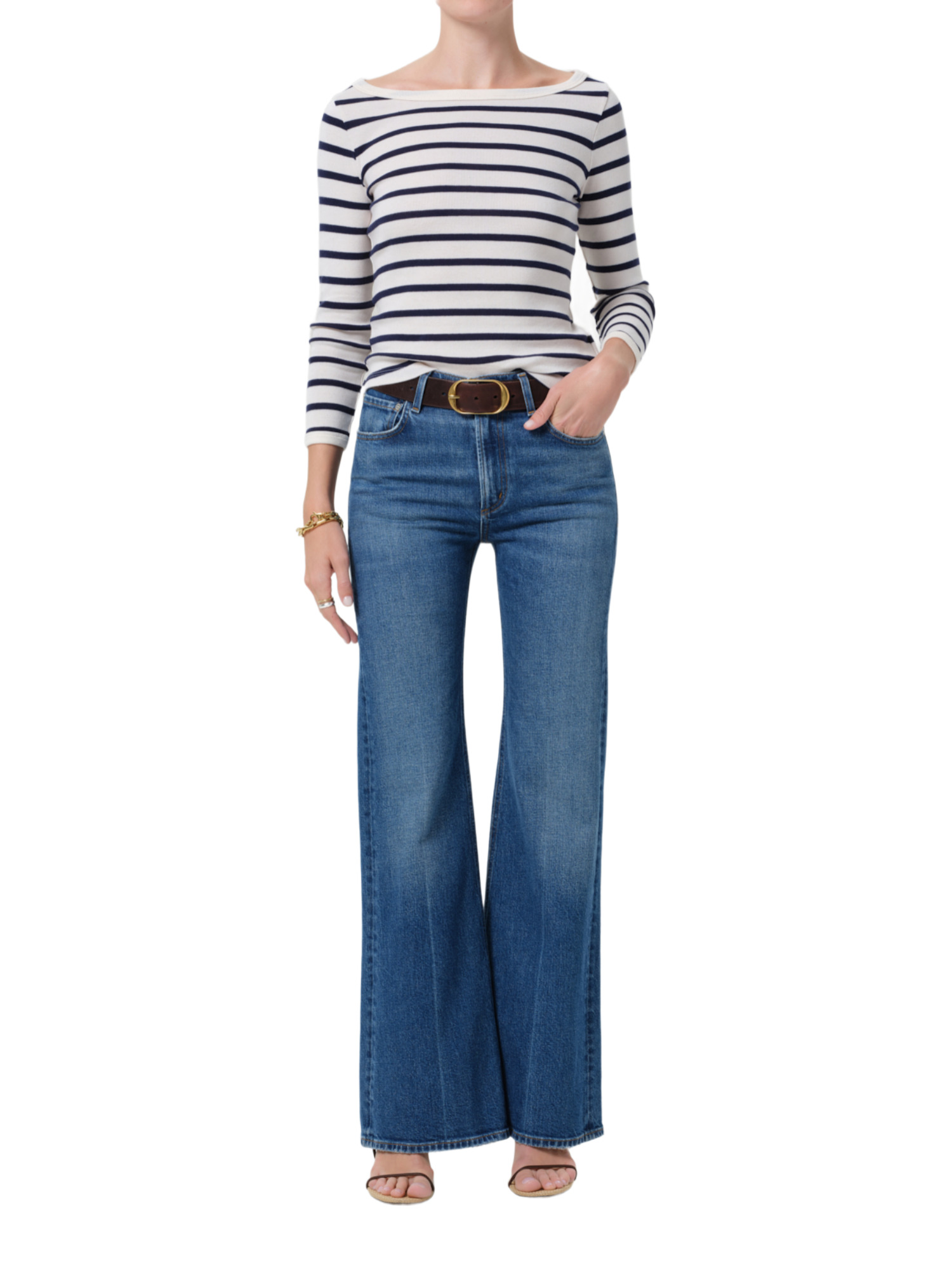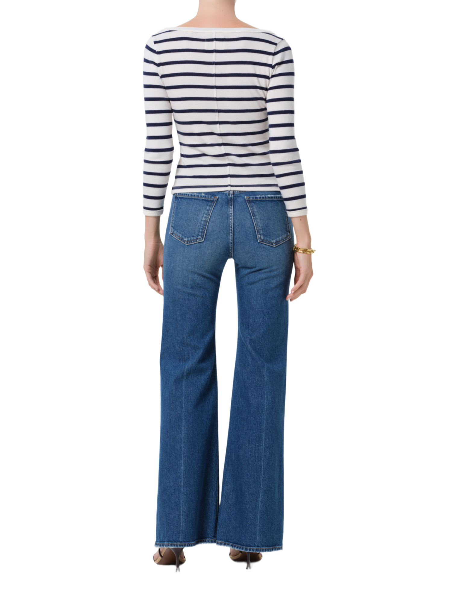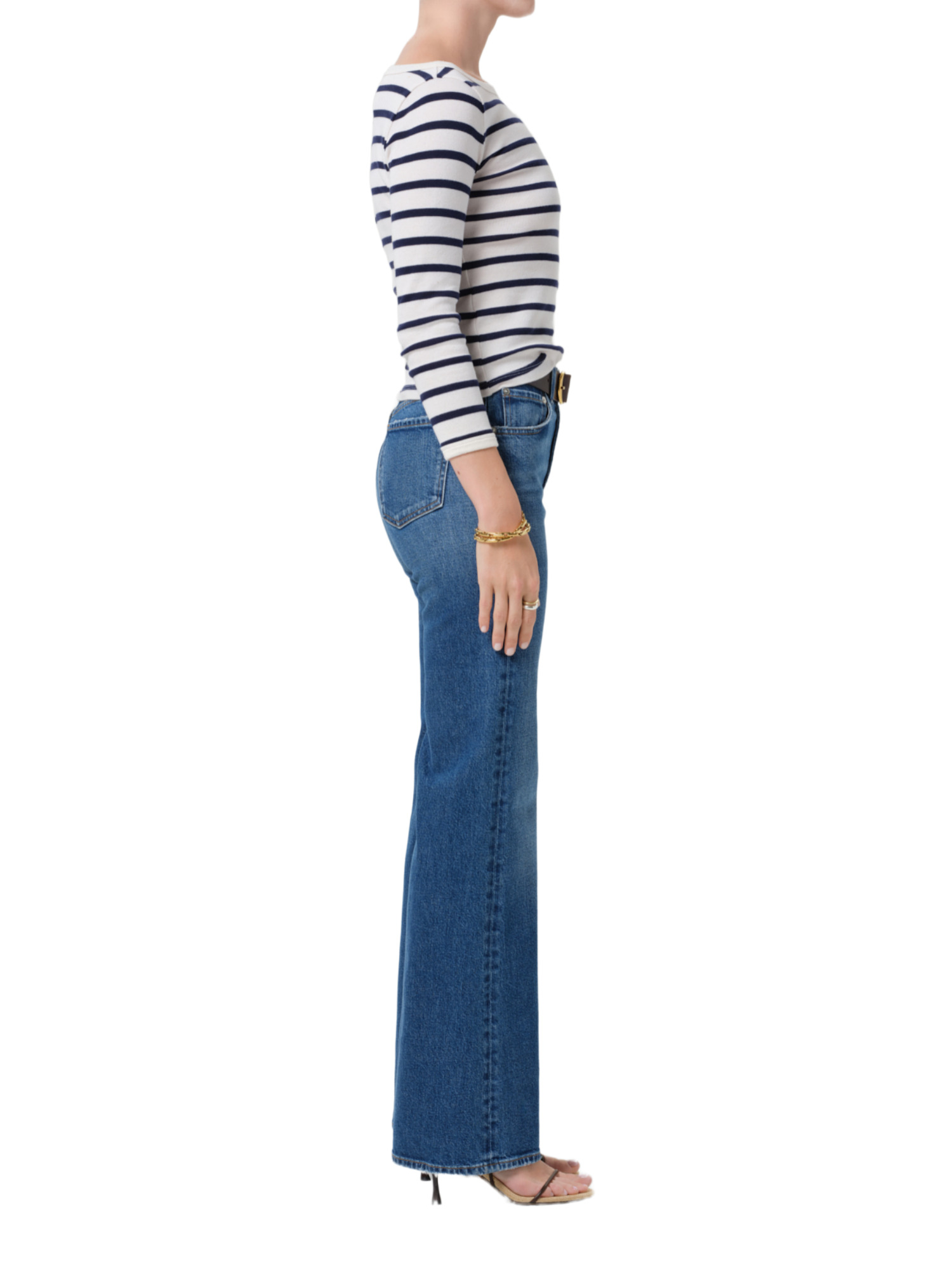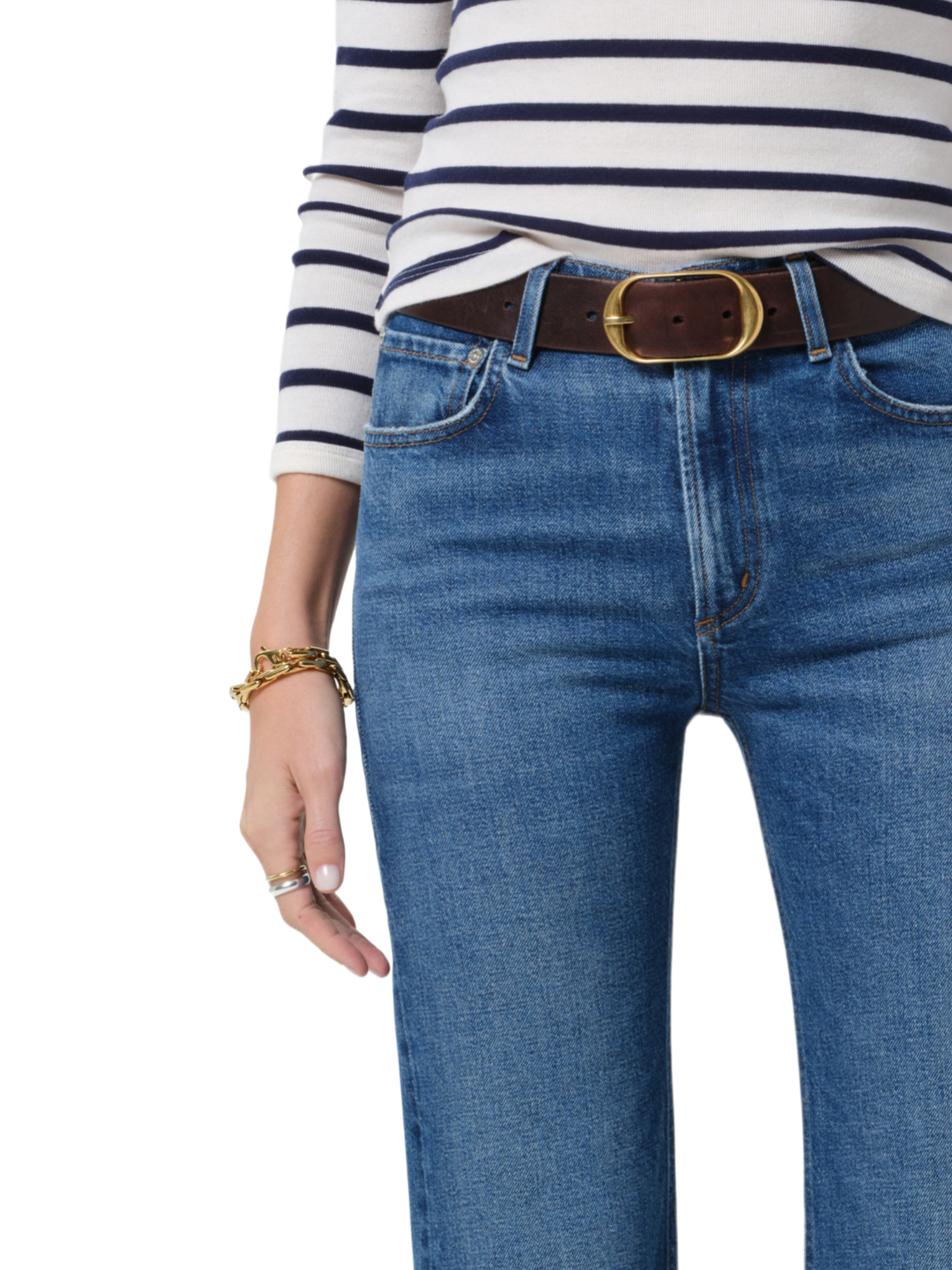Nicht nur stilvoll, sondern auch nachhaltig: Die Kimberly Schlaghose ist aus regenerativer Baumwolle gefertigt. Dieses Material stammt aus dem Regenerative Cotton Program der Citizens of Humanity Group, das sich der Förderung regenerativer Landwirtschaftsmethoden widmet. Zusätzlich sorgt der innovative Eco-Indigo-Farbstoff für leuchtende Farben, die umweltfreundlich hergestellt werden.
