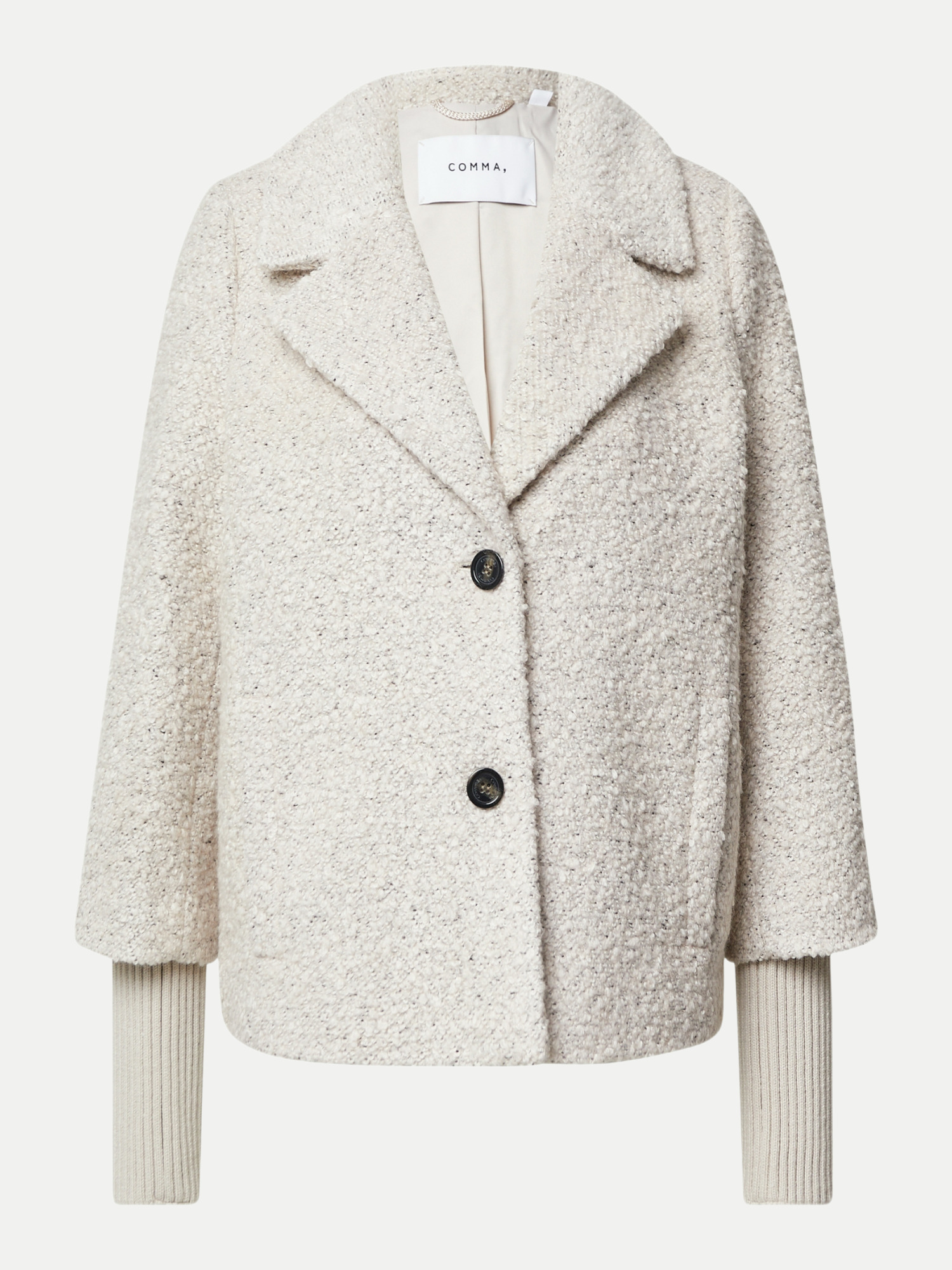 Die Boucléjacke zeichnet sich durch ihre feinen Rippbündchen ab, die nicht nur für eine perfekte Passform sorgen, sondern auch stilistisch Akzente setzen. Das weiche Futter aus Polyester und Viskose-Polyester-Mix im Ärmelbereich garantiert ein angenehmes Tragegefühl, selbst wenn es draußen ungemütlich wird. Die Jacke ist ideal für den Layering-Look in der Übergangszeit oder als zuverlässige Oberbekleidung in den kälteren Monaten.