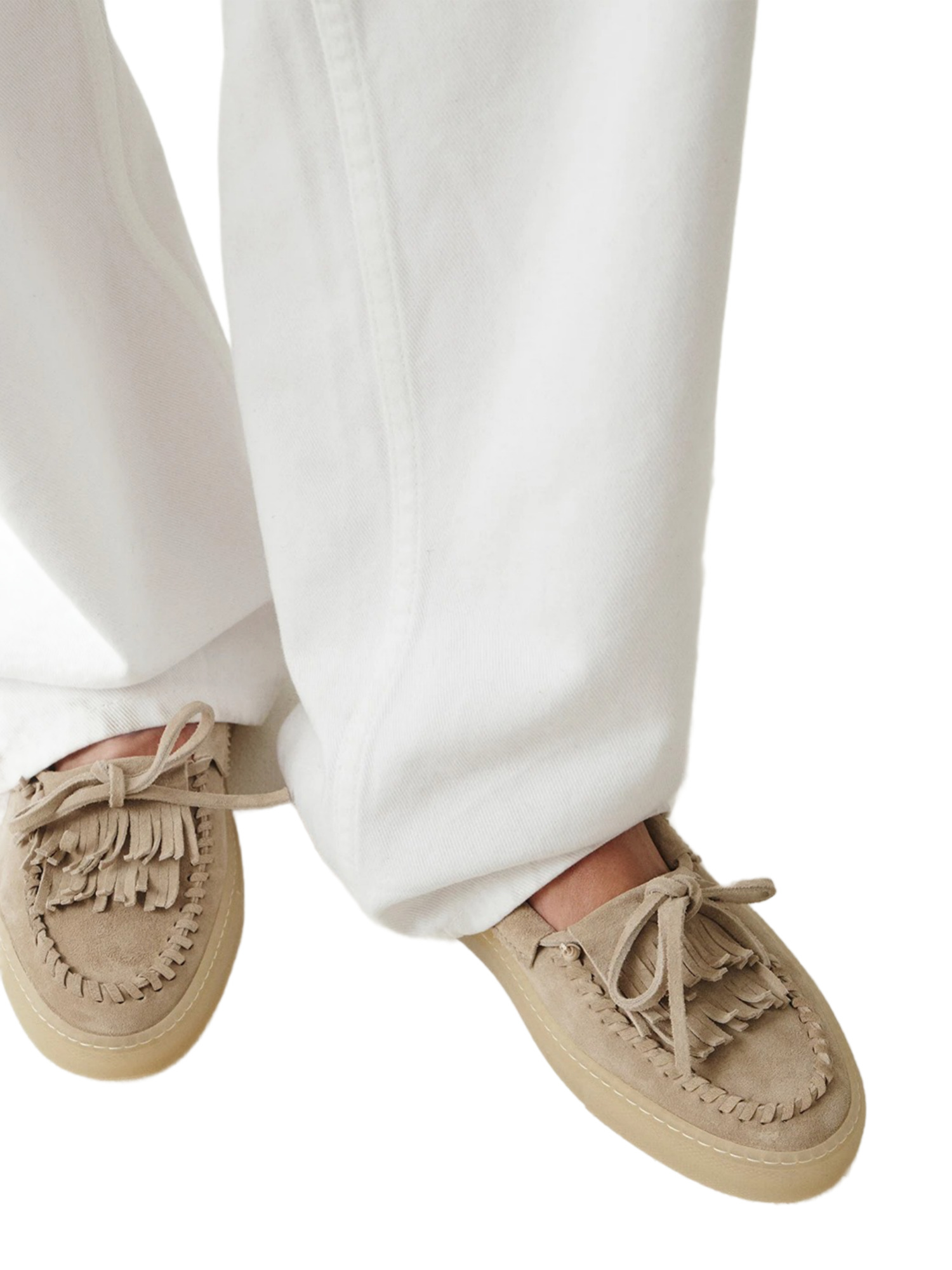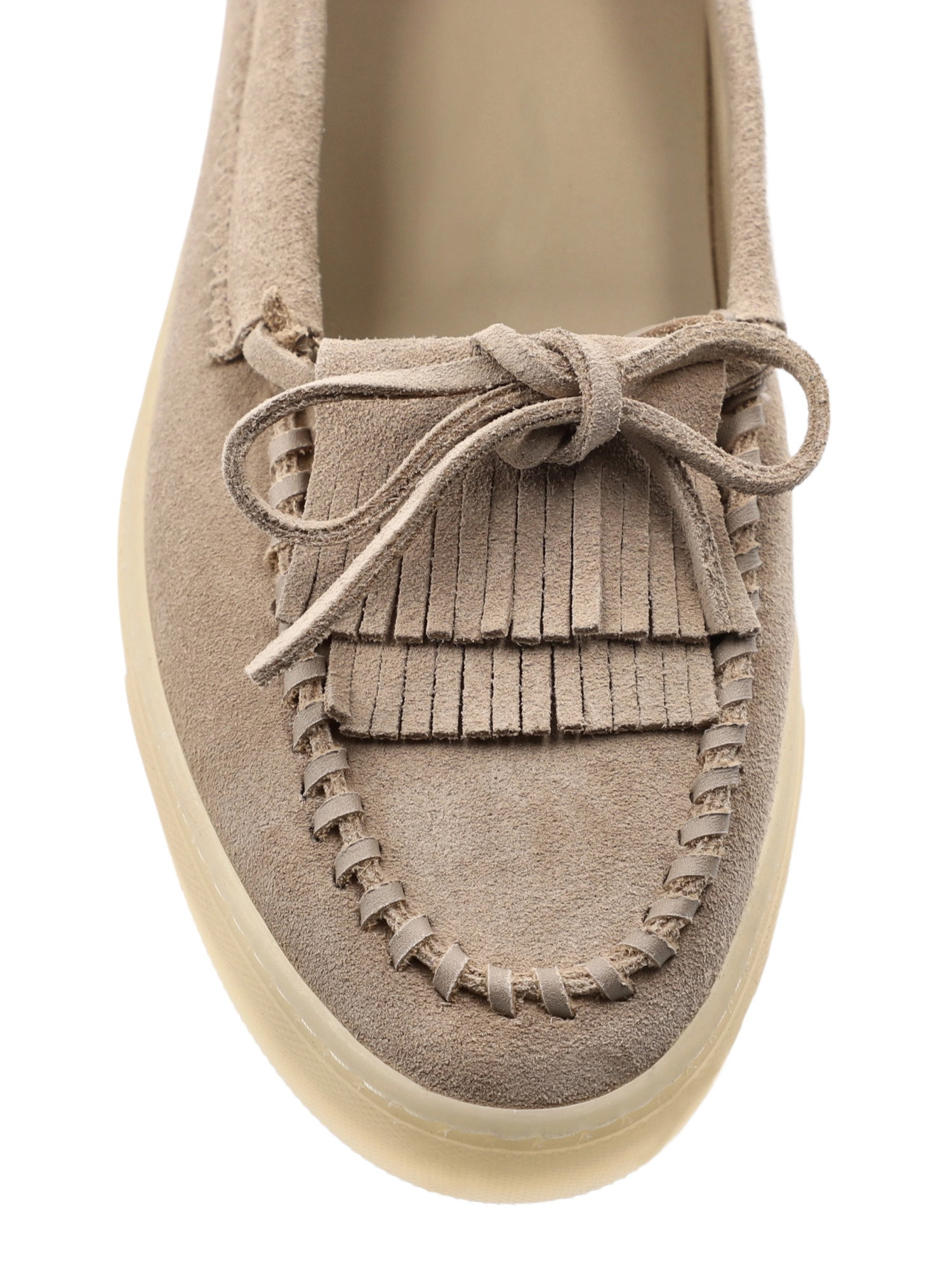 Die Schuhe zeigen sich in einem klassischen braunen Ton, der Vielseitigkeit verspricht und sich mühelos in jedes Outfit einfügt. Die subtilen Details wie Schleifen und Fransen auf der Zunge, kombiniert mit den Akzenten im Mokassin-Stil, verleihen den Schuhen eine spielerische, aber dennoch elegante Note. Die flexible und rutschfeste Sohle sorgt dafür, dass Du auf jedem Untergrund sicher unterwegs bist.