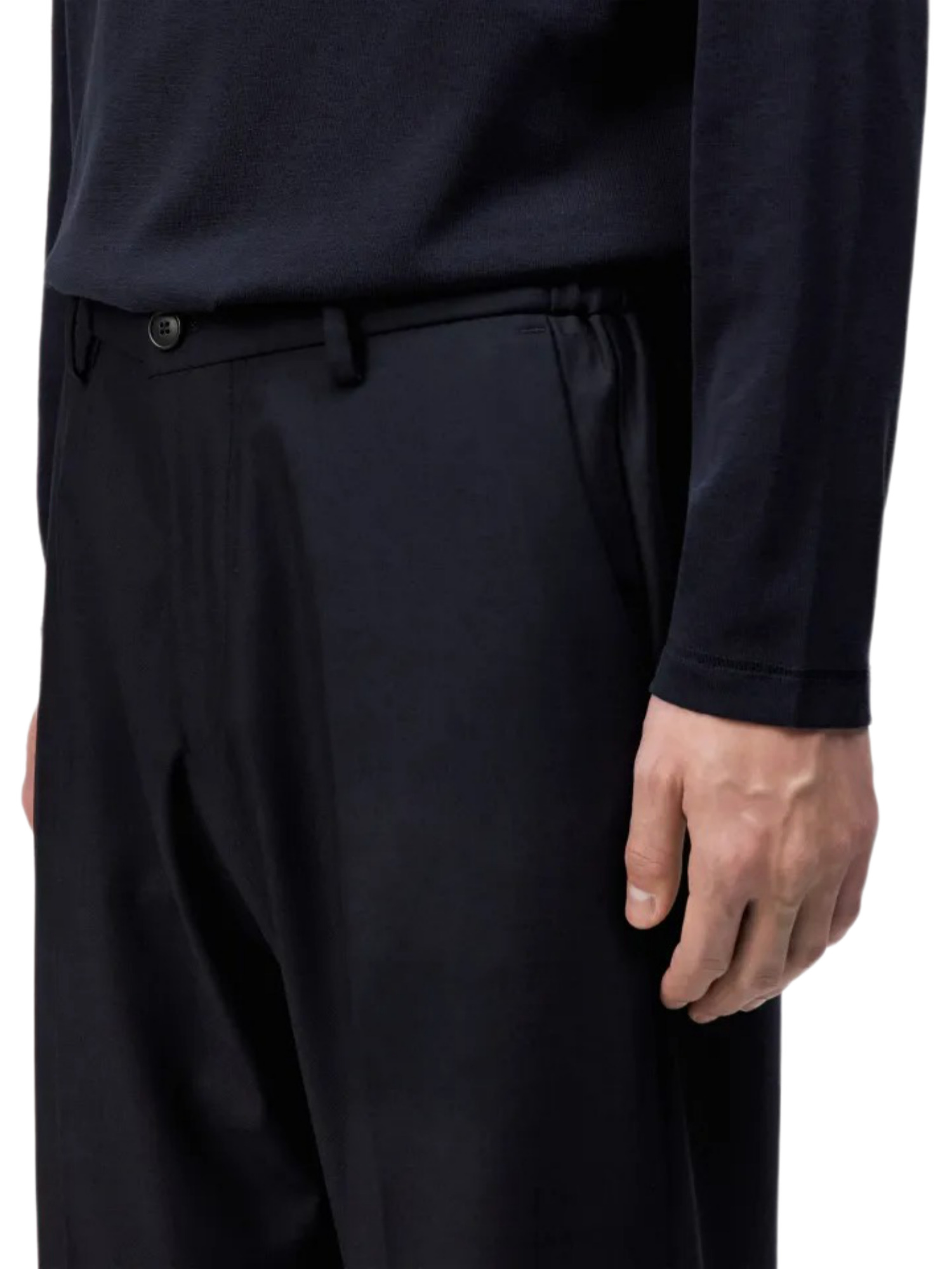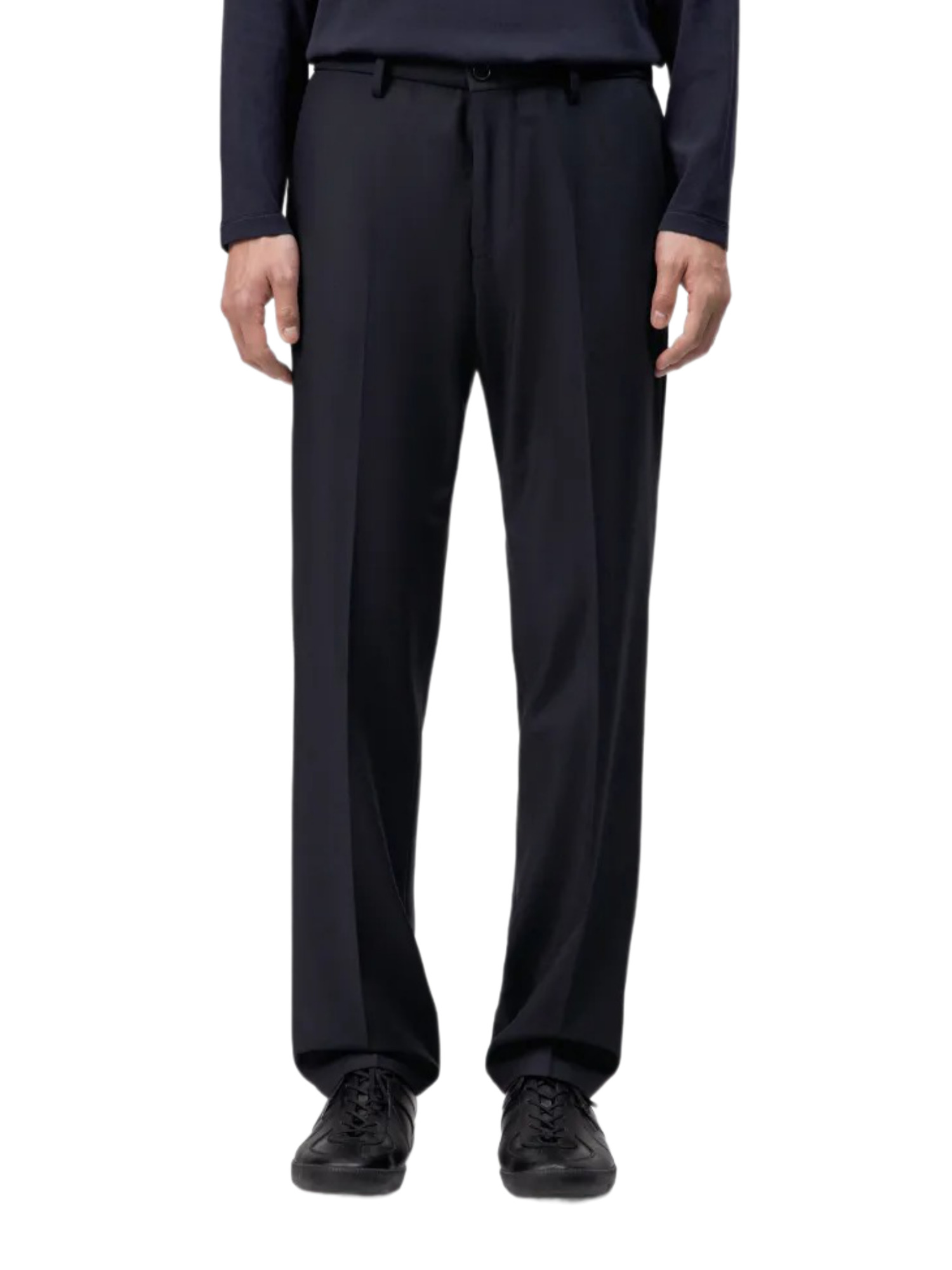 Der hochwertige Woll-Mix sorgt für einen sanften Griff und einen ruhigen Fall der Hose. Die fein gewebte Struktur verleiht ihr eine zeitlose Eleganz, die in keiner Garderobe fehlen sollte. Mit einer Zusammensetzung aus 57% Polyester, 19% Viskose, 18% Wolle und 6% Elasthan bietet die Hose eine perfekte Balance zwischen Haltbarkeit und Flexibilität.