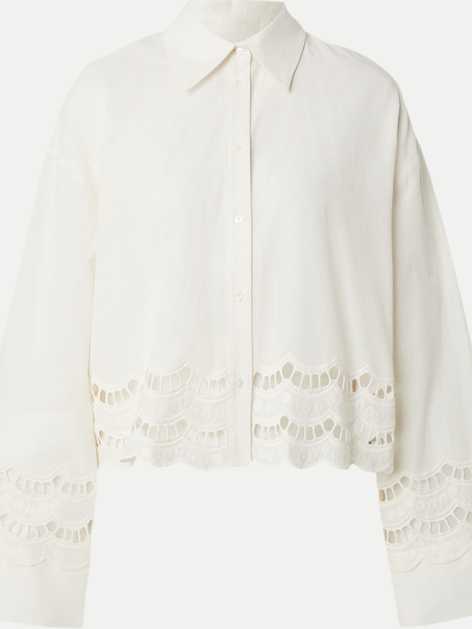 Ein besonderes Highlight ist die feine Spitzenverzierung, die der Bluse eine feminine und verspielte Note verleiht. Dieses Detail macht die Bluse zu etwas ganz Besonderem und unterstreicht Deinen Sinn für Mode und Qualität.