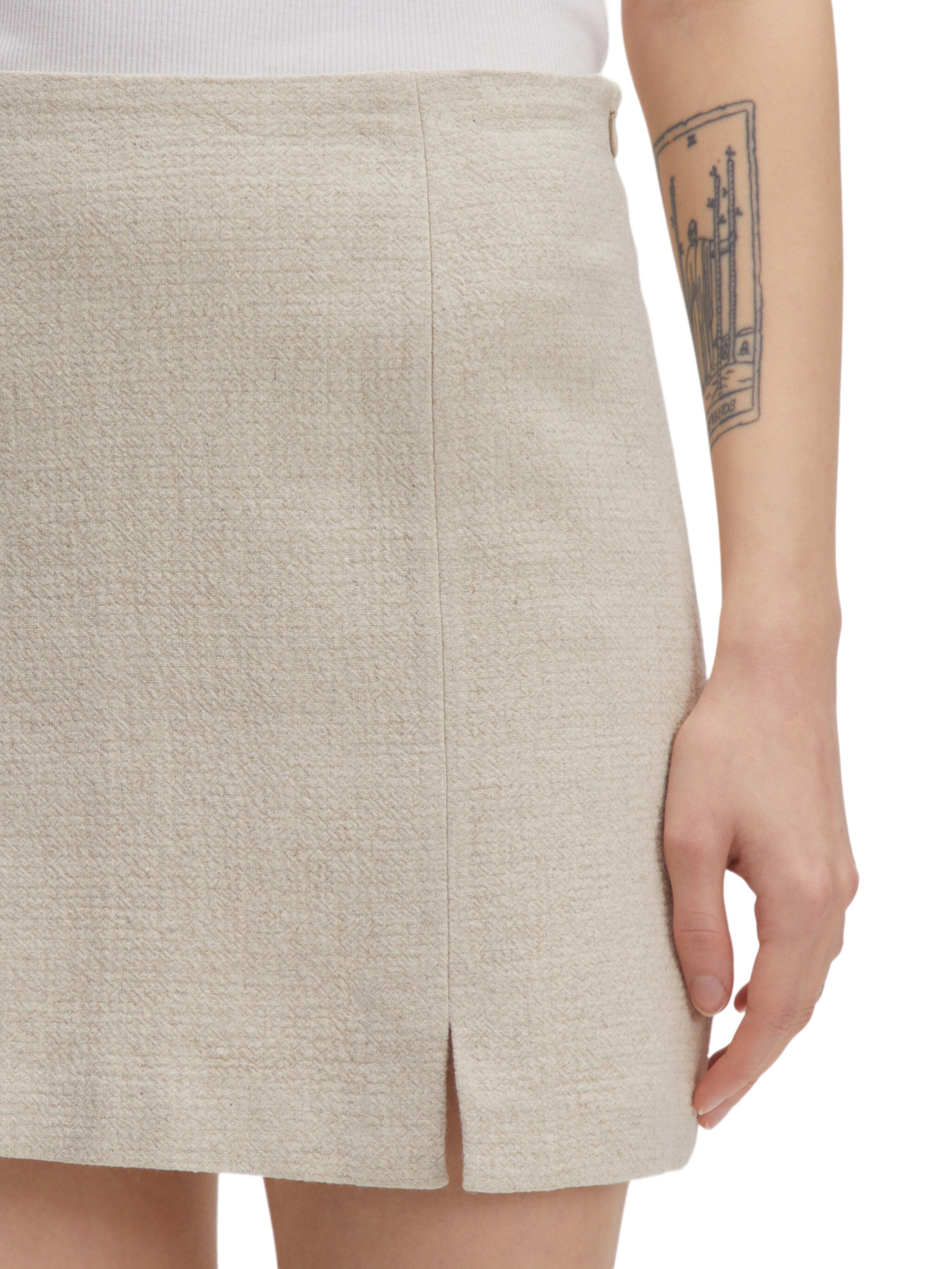 Der Ellinor Rock besteht aus einer angenehmen Mischung aus 60% Viskose und 40% Leinen, ergänzt durch ein zweites Obermaterial aus 72% Viskose, 27% Leinen und einem Hauch von Baumwolle. Diese Materialien sorgen nicht nur für ein leichtes Tragegefühl, sondern auch für eine gute Atmungsaktivität, ideal für warme Tage oder hektische Termine.