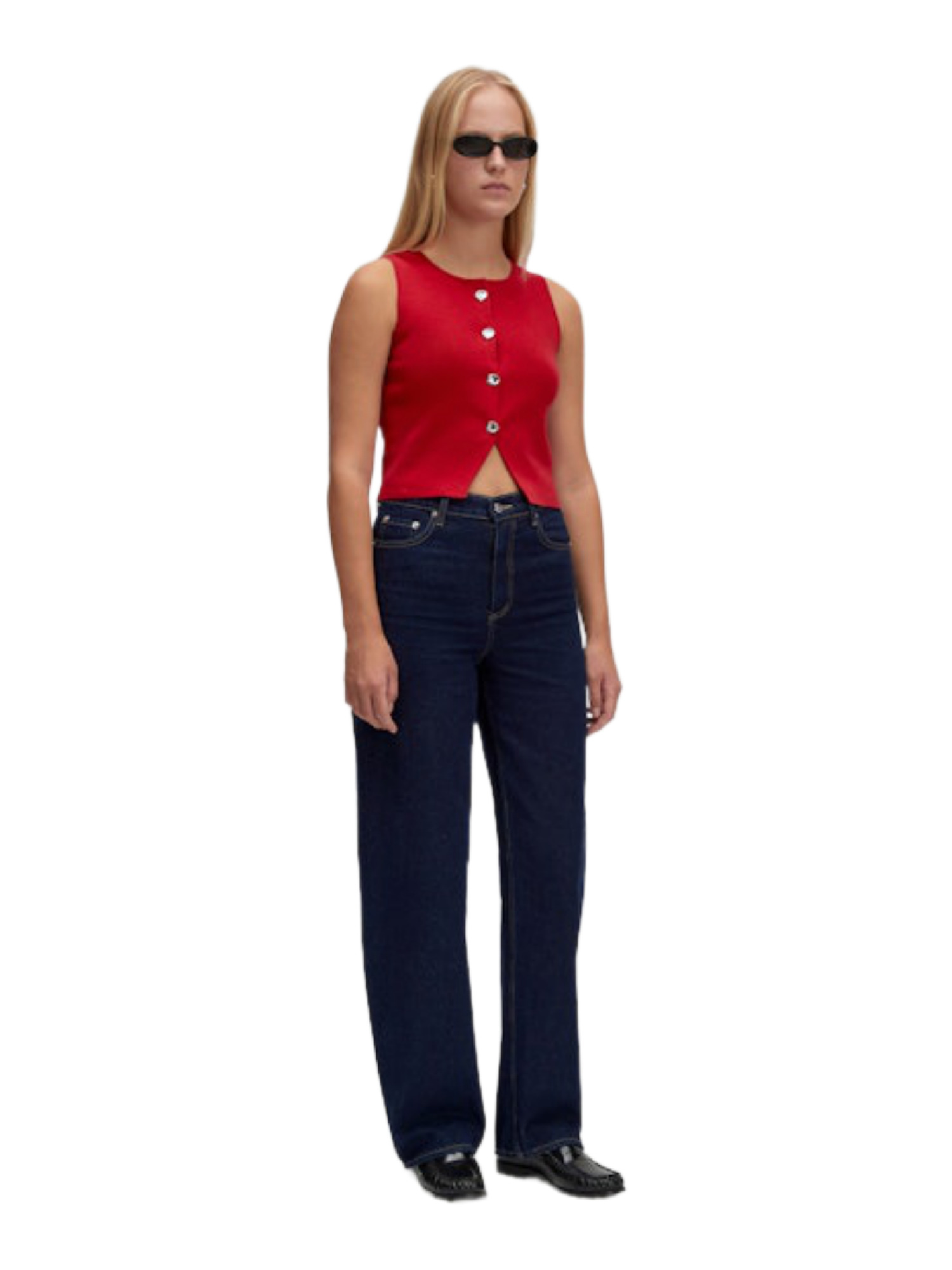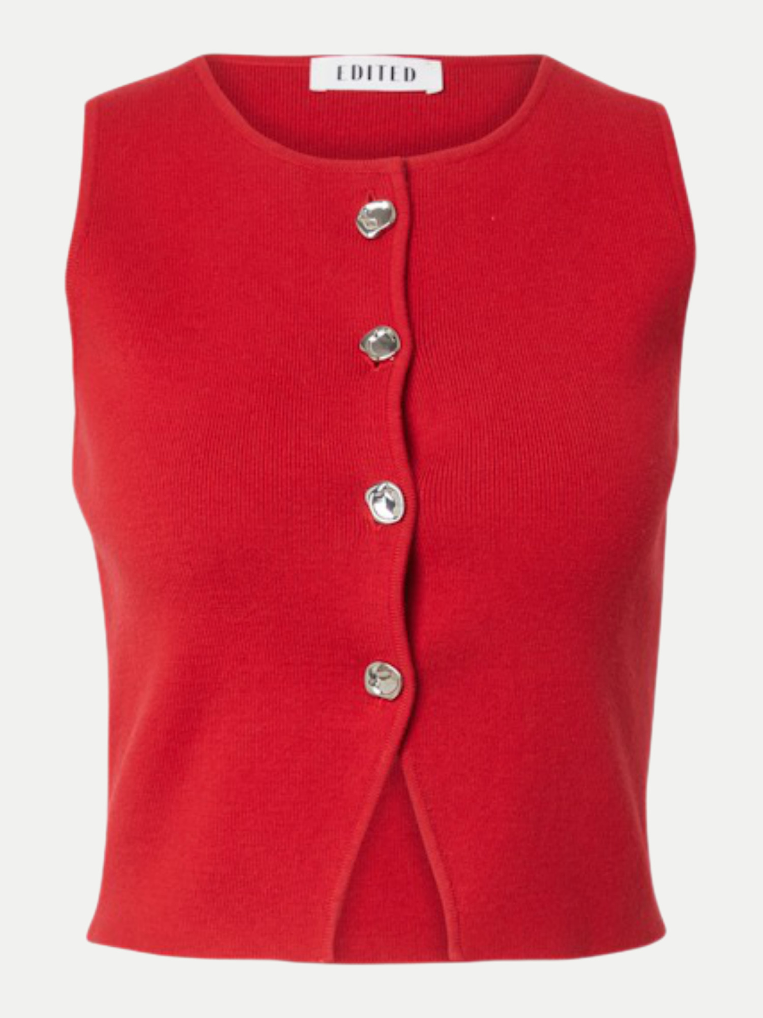 Wenn Du auf der Suche nach einem vielseitigen Kleidungsstück bist, das sowohl stilvoll als auch umweltbewusst ist, dann ist die Weste Gemma von EDITED genau das Richtige für Dich. Diese ärmellose Weste kombiniert Nachhaltigkeit mit modernem Design und bietet Dir einen Look, der sowohl für das Büro als auch für entspannte Wochenenden ideal ist.