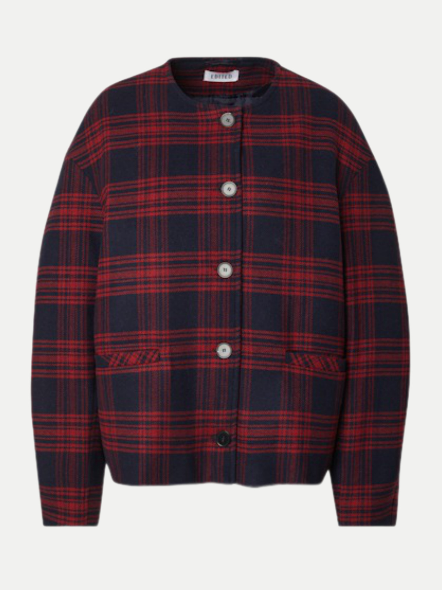 Das karierte Muster ist ein absoluter Klassiker und lässt sich vielseitig kombinieren. Ob über einem schlichten T-Shirt oder einem eleganten Rollkragenpullover – diese Jacke rundet jedes Outfit ab. Der Rundhalskragen gibt dem Ganzen eine moderne Note und macht die Jacke zu einem echten Allrounder für jede Gelegenheit.