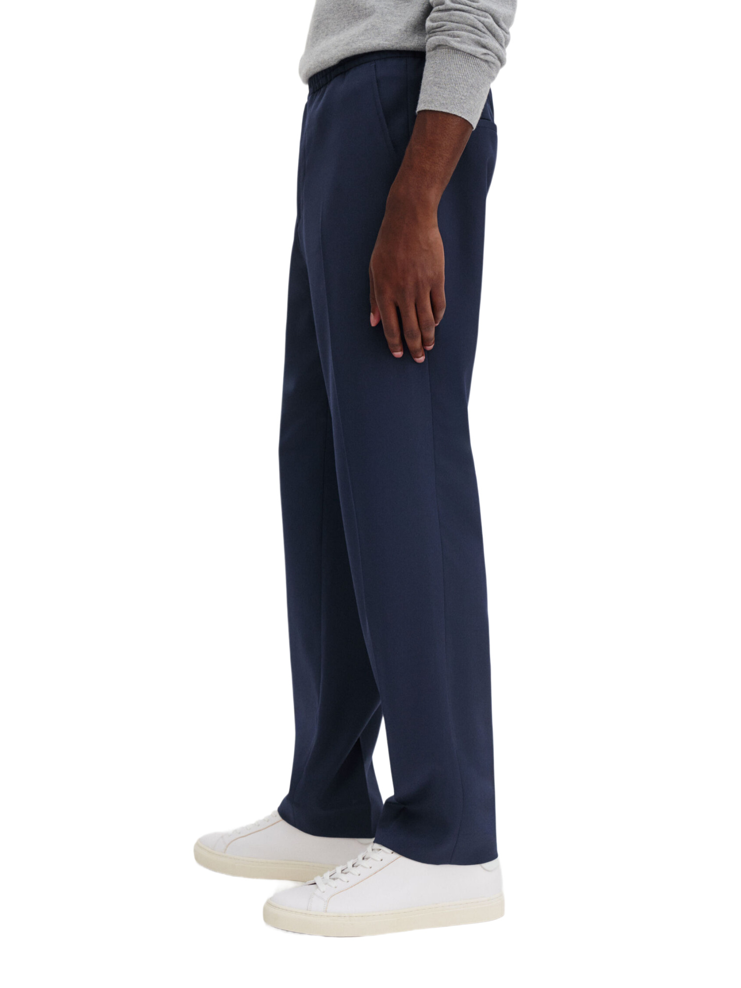 Die Hose ist aus einem hochwertigen Mix aus Polyester, Wolle und Elasthan gefertigt, was sie nicht nur angenehm zu tragen macht, sondern auch besonders langlebig. Der elastische Tunnelzugbund sorgt für eine flexible Passform, die sich perfekt an Deine Bewegungen anpasst, ohne zu zwicken oder zu rutschen. Ob Du einen entspannten Tag zuhause planst oder einen lässigen Look für das Büro suchst, diese Hose ist die ideale Wahl.