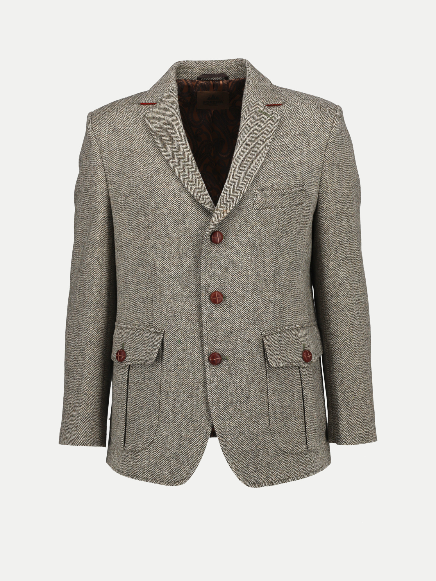 Schicker und moderner Janker von Foresta in grau. Der Janker verfügt über 2 Außentaschen an den Flanken und eine Brusttasche auf der linken Seite. Das Innenfutter des Jankers ist dunkelbraun. Die Knöpfe des Jankers bestehen aus echtem Leder und an den Ellbögen ist jeweils ein hellbraunes Lederpatch versehen.