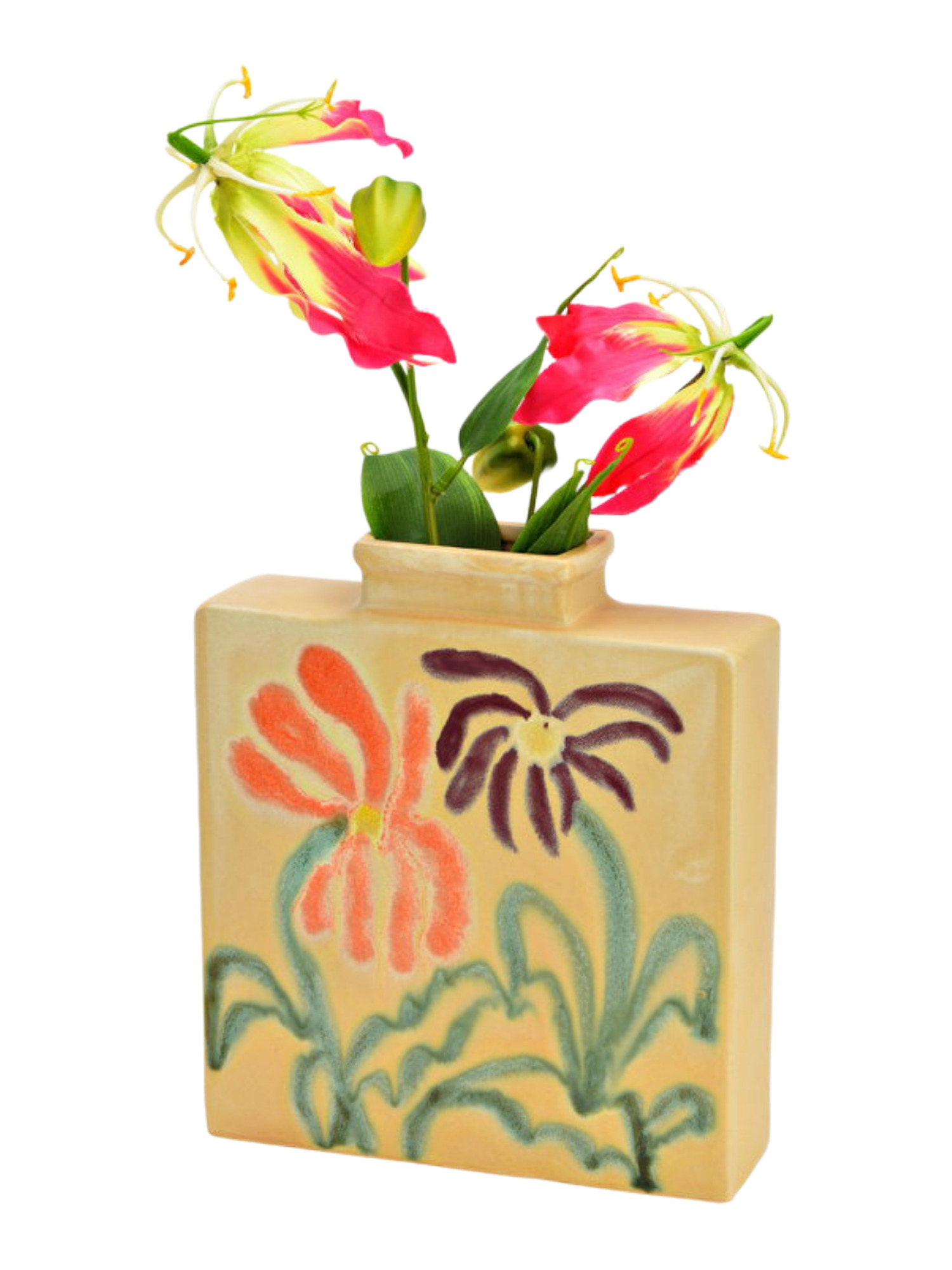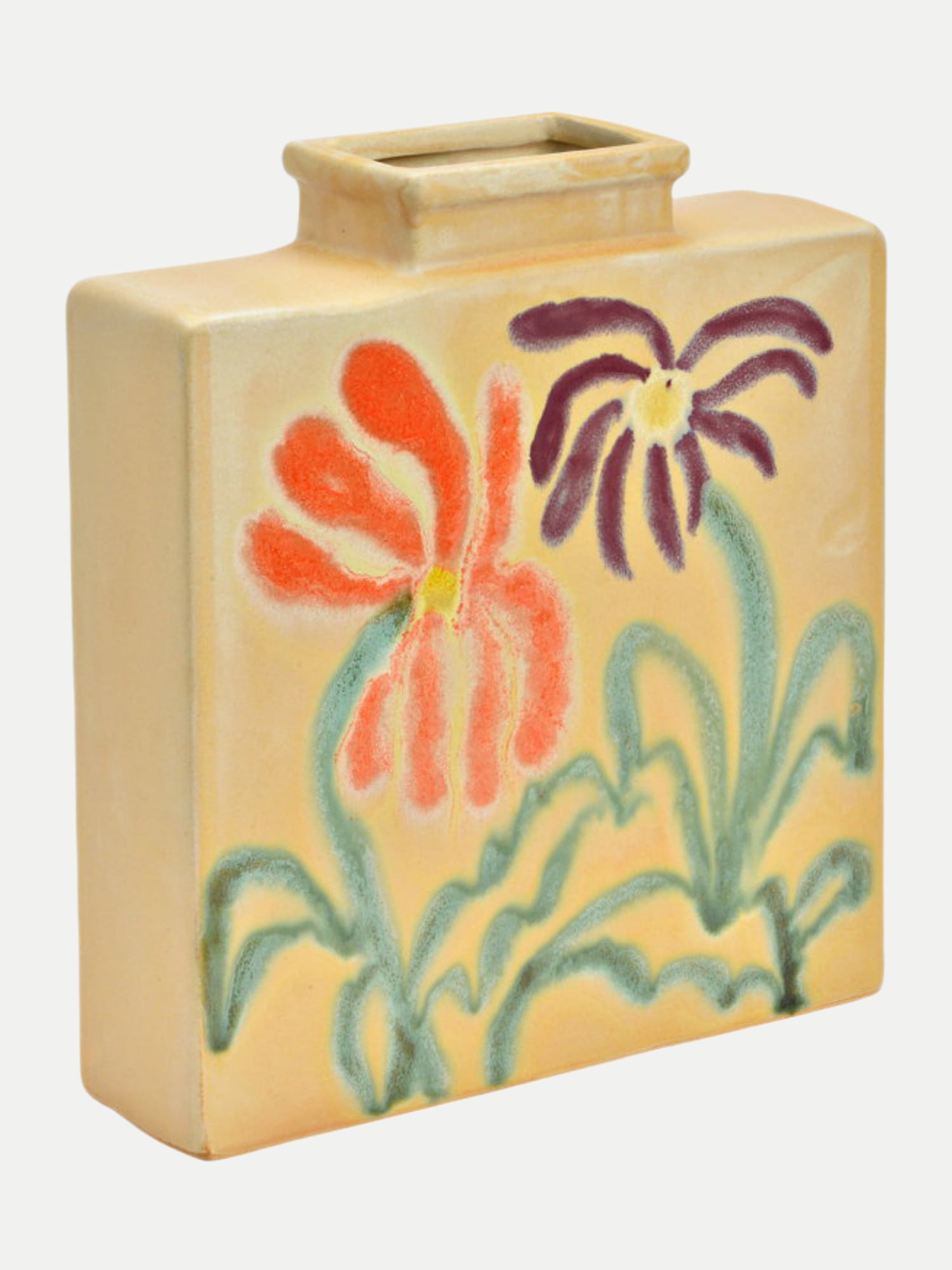 Die Vase ist aus hochwertigem Steingut gefertigt, einem Material, das für seine Robustheit und Langlebigkeit bekannt ist. Die natürliche beige Tönung und die glatte Oberfläche reflektieren das Licht sanft und bringen eine warme, einladende Atmosphäre in Dein Zuhause. Mit ihren kompakten Maßen von 18x21x5 cm findet sie überall Platz, ohne aufdringlich zu wirken.