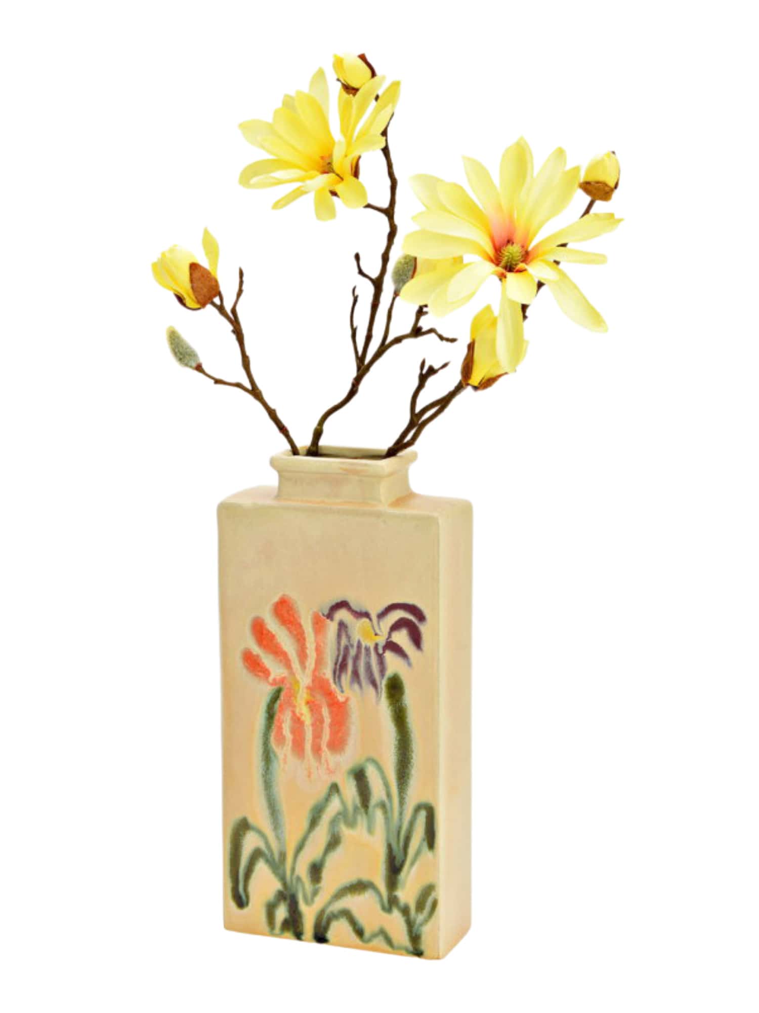 Die Vase ist aus hochwertigem Steingut gefertigt, was ihr eine angenehme Haptik und eine robuste Beschaffenheit verleiht. Mit den Maßen 14x28x6 cm passt sie perfekt auf jeden Tisch oder jede Fensterbank und bietet genug Platz für Deine Lieblingsblumen. Das bunte Blumendekor ist detailreich gestaltet und macht die Vase zu einem farbenfrohen Highlight in jedem Raum.