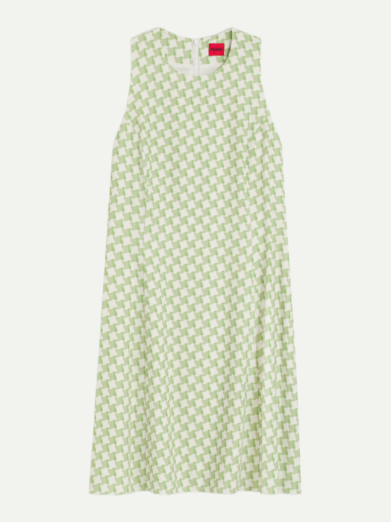 Träumst Du von einem Kleid, das sowohl stilvoll als auch bequem ist? Das ärmellose Kleid von HUGO könnte genau das Richtige für Dich sein! Mit seinem modernen geometrischen Allover-Print zieht es alle Blicke auf sich und verleiht Dir einen unverwechselbaren Look, der Deine Persönlichkeit unterstreicht.