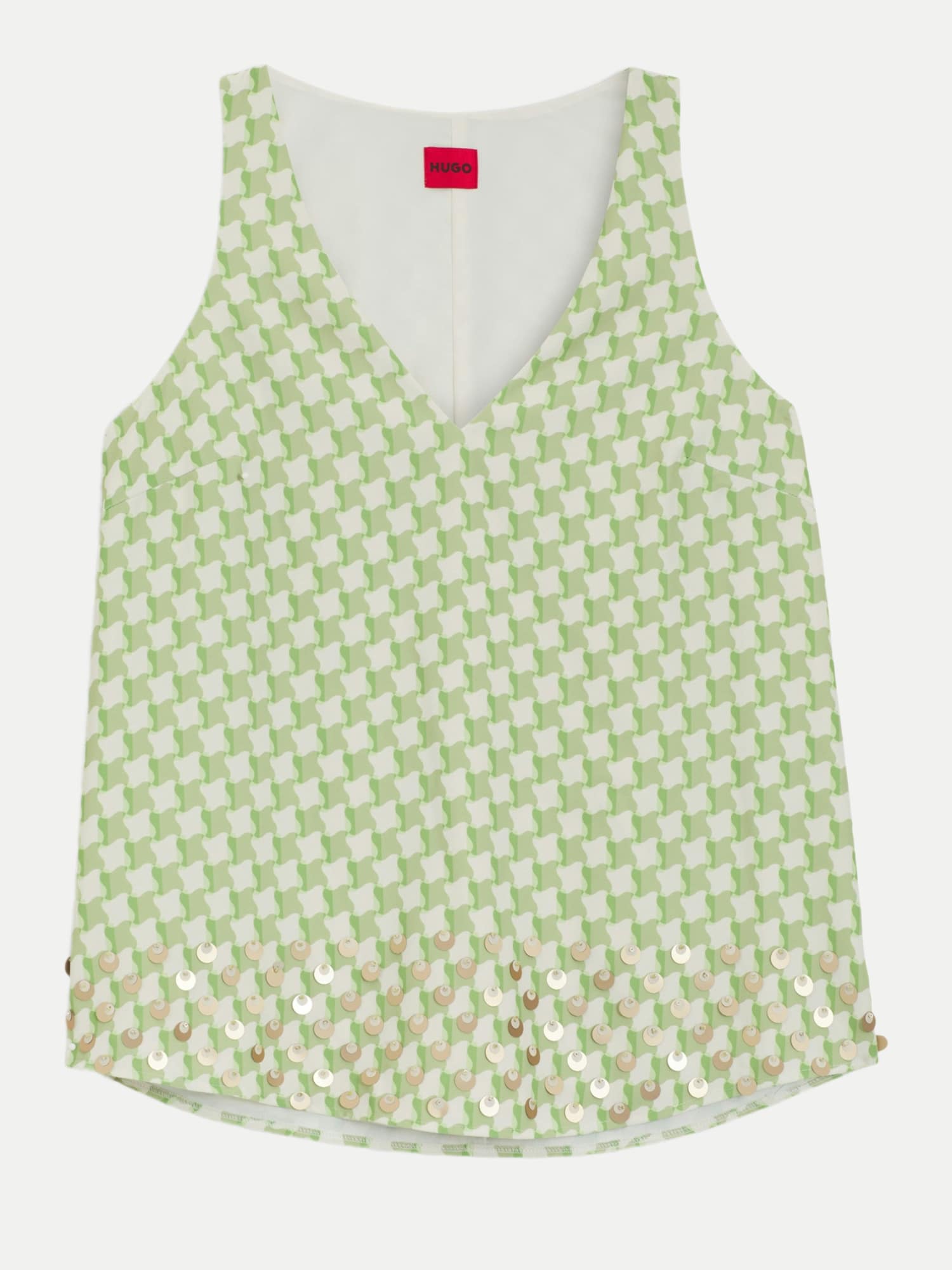 Träumst du von einem Top, das sowohl stilvoll als auch spektakulär ist? Das "Top Allover-Print" von HUGO könnte genau das Richtige für dich sein! Dieses festliche Top fängt mit seinem auffälligen geometrischen Print sofort die Blicke auf sich und ist ideal für besondere Anlässe oder als schickes Outfit für die Feiertage.