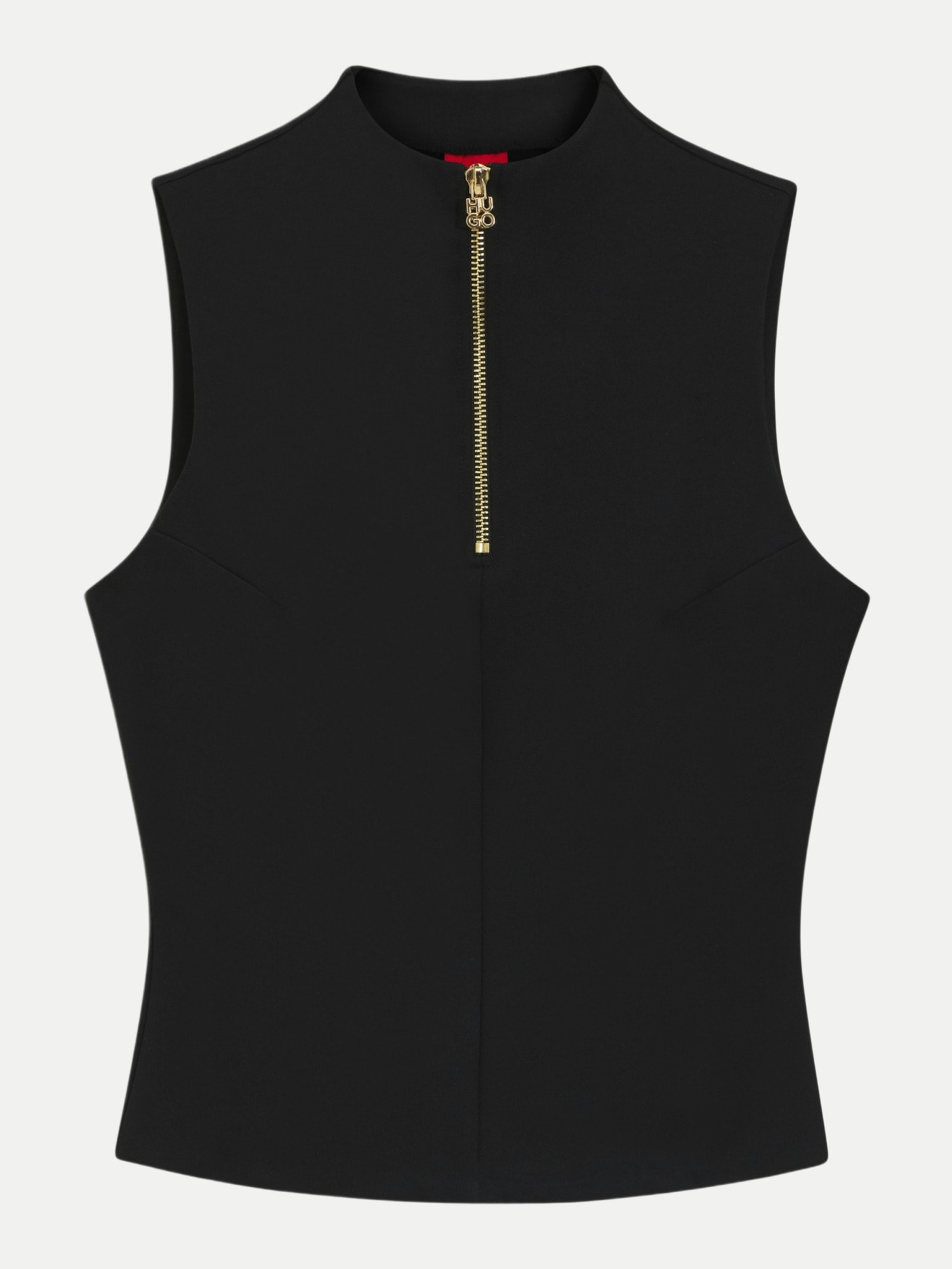 Der feine Stehkragen und der kurze, goldfarbene Reißverschluss am Rücken mit einem exklusiven Stack-Logo-Zipper verleihen dem Top eine besondere Note. Das unifarbene Design macht es leicht kombinierbar – ob unter einem Blazer fürs Büro oder lässig zur Jeans für einen Stadtbummel.