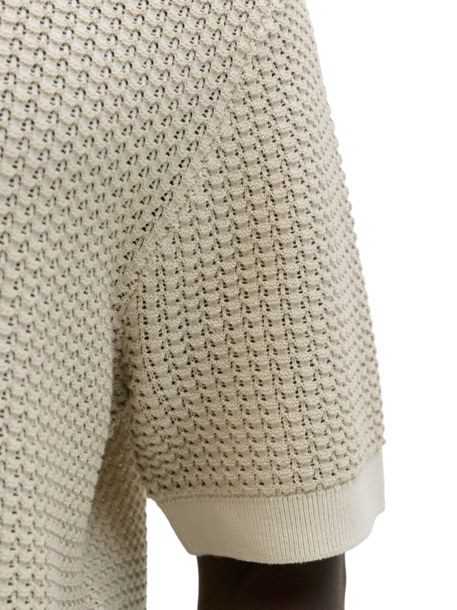 Das Polohemd ist aus einem angenehmen Flachstrick-Gewebe gefertigt, das sich durch seine Dehnbarkeit und Bequemlichkeit auszeichnet. Die Kombination aus 50% herkömmlicher Baumwolle und 50% Bio-Baumwolle sorgt nicht nur für ein weiches Tragegefühl, sondern auch für Nachhaltigkeit in deiner Garderobe.
