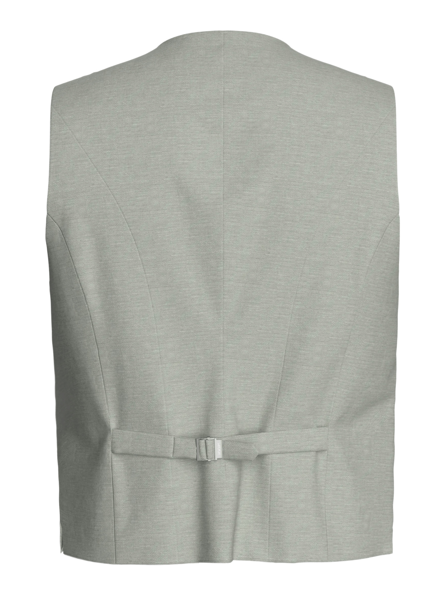 Die Anzugweste verfügt über eine durchgehende Knopfleiste, die nicht nur praktisch ist, sondern auch stilistisch punktet. Zwei sorgfältig eingearbeitete Paspeltaschen bieten Platz für kleine Essentials oder dienen einfach nur als elegantes Detail. Der rückseitige Westenriemen ermöglicht es Dir, die Passform leicht zu justieren, um immer einen optimalen Sitz zu gewährleisten.