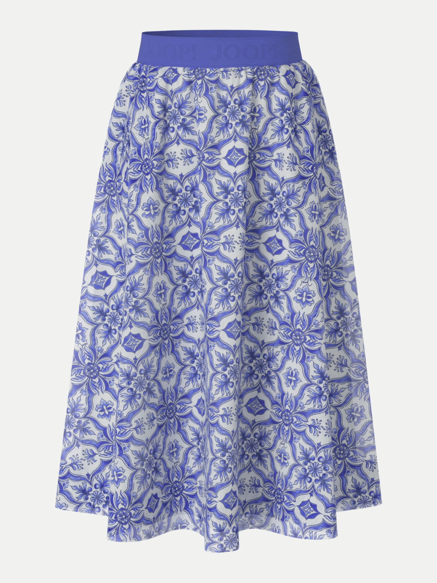 Freue Dich auf den JOOP! Midirock, der mit seinem charmanten Allover-Floral-Print und einem stilvollen Bund mit Schriftzug nicht nur bequem, sondern auch ein echter Hingucker ist. Dieser Rock kombiniert modisches Design mit hochwertigen Materialien, bestehend aus 91% Baumwolle und 9% Seide, was ihn besonders angenehm zu tragen macht.