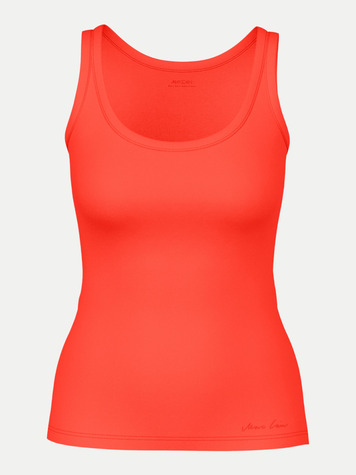Dieses schmal geschnittene, taillierte Top schmiegt sich sanft an Deine Figur an, ohne einzuengen. Der großzügige Rundhalsausschnitt und die sportiven Träger sorgen für eine moderne und lässige Ausstrahlung, die Deinem Alltagslook eine frische Note verleiht. Ob unter einem Blazer fürs Büro oder lässig zur Jeans am Wochenende – dieses Top ist ein echter Allrounder.
