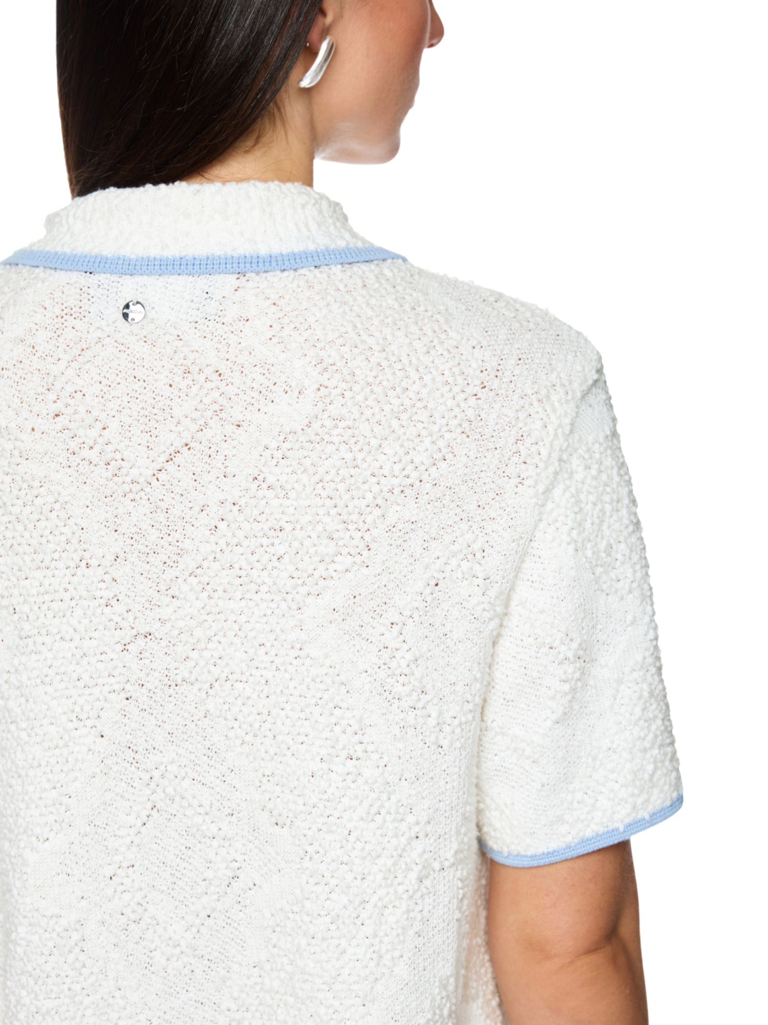 Dieser charmante Cardigan zeichnet sich durch sein dezentes Strickmuster und die praktischen Knöpfe zum Verschließen aus. Die kurzen Ärmel machen ihn zum idealen Überzieher für laue Sommerabende oder als stilvolle Ergänzung im Büro. Der Umlegekragen fügt eine klassische Note hinzu, die Deinem Outfit eine elegante Ausstrahlung verleiht.