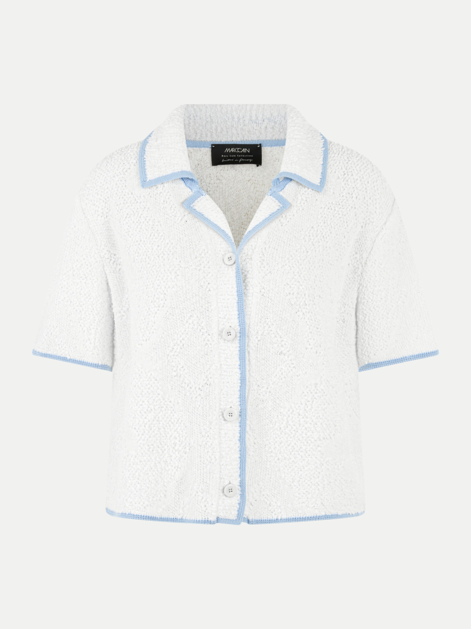 Wenn Du auf der Suche nach einem vielseitigen und stilvollen Begleiter für Deine Sommergarderobe bist, dann ist der Kurzarm-Cardigan von MARC CAIN genau das Richtige für Dich. Gefertigt aus einer weichen Mischung aus Baumwolle, Viskose und Polyamid, bietet dieser Cardigan nicht nur außergewöhnlichen Tragekomfort, sondern auch eine perfekte Passform.