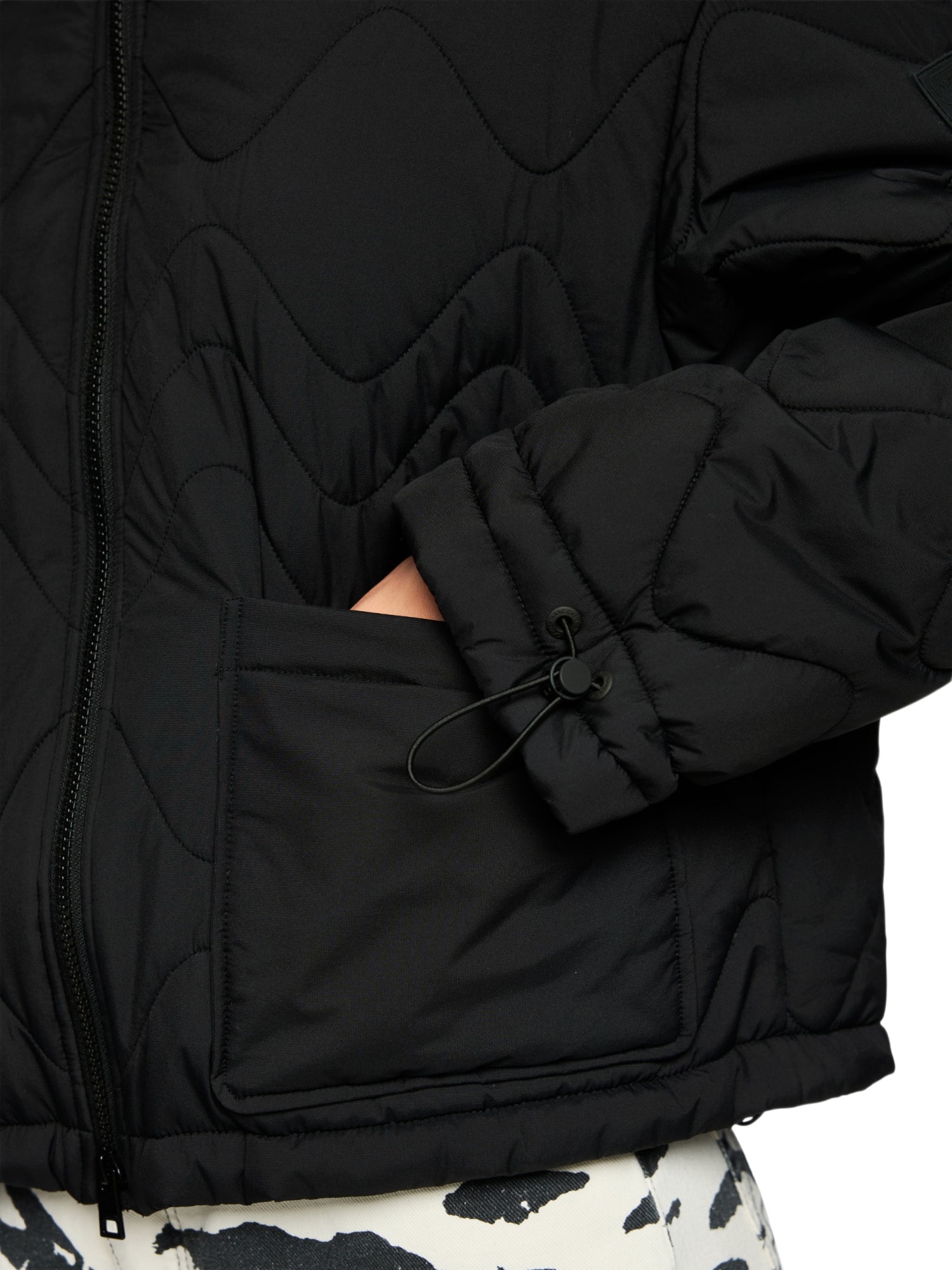 Diese Jacke kombiniert einen oversized Schnitt mit einer modernen, wellenförmigen Steppung, die nicht nur ins Auge fällt, sondern auch für eine gleichmäßige Wärmeverteilung sorgt. Der leicht verkürzte Schnitt bietet dabei eine perfekte Balance zwischen Bewegungsfreiheit und Wärme. Große aufgesetzte Taschen auf der Vorderseite bieten genügend Platz für deine Essentials, während der Ärmelsaum mit einem praktischen Gummizug ausgestattet ist.