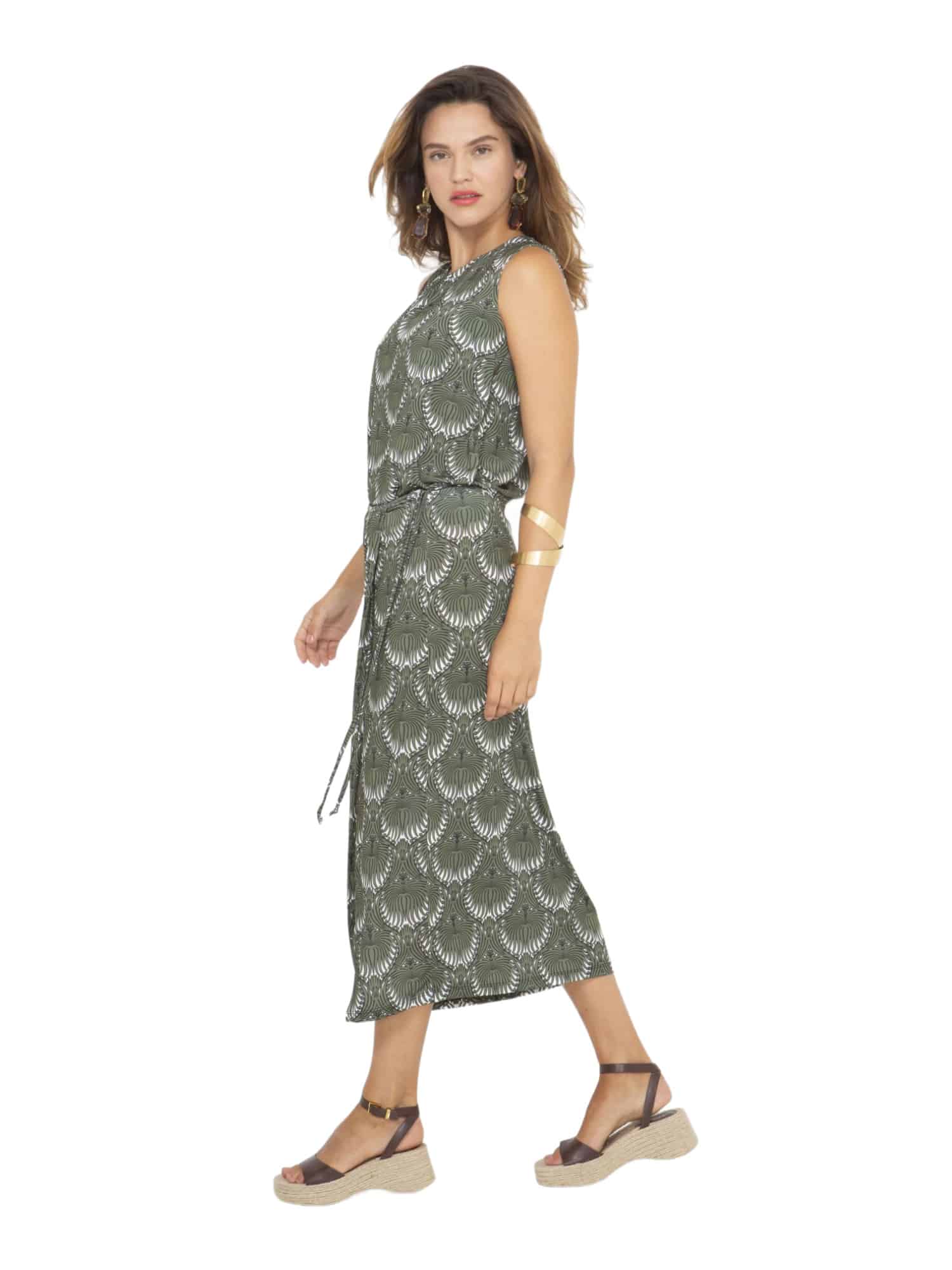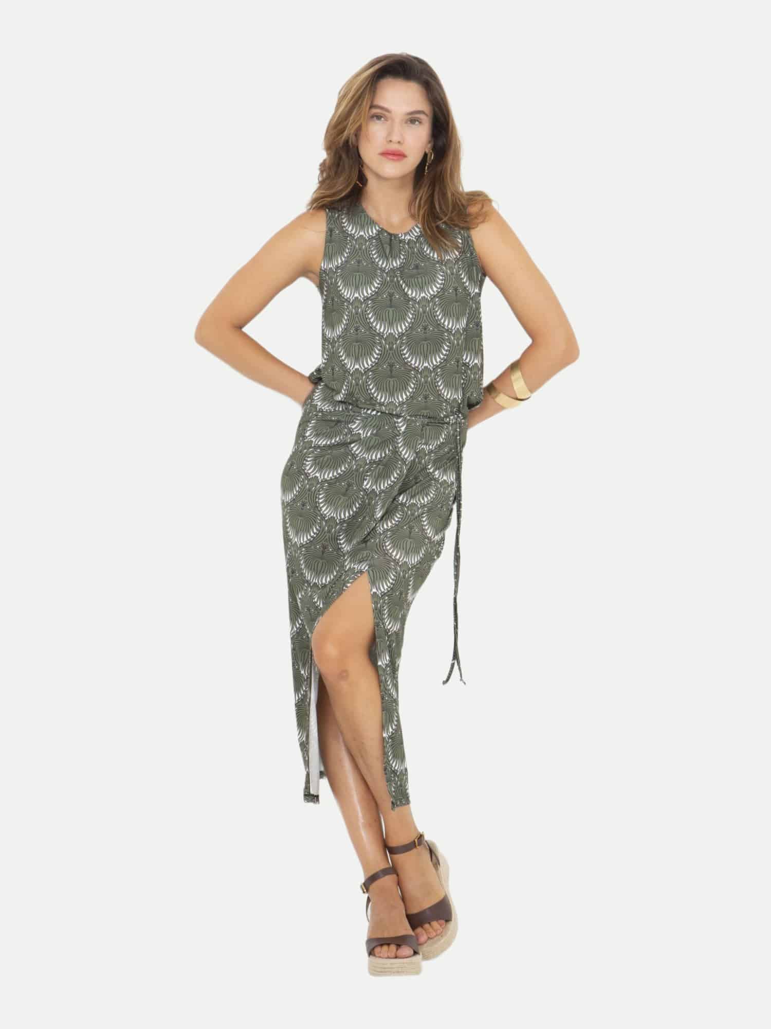 Ob für das Büro, einen entspannten Tag in der Stadt oder eine abendliche Veranstaltung, dieser Rock passt sich jeder Situation an. Die Wickeloptik sorgt für eine schmeichelhafte Silhouette und betont gekonnt Deine Figur. Der ethno-inspirierte Allover-Print in Khaki verleiht dem Rock eine besondere Note und macht ihn zu einem vielseitigen Begleiter für zahlreiche Outfit-Kombinationen.