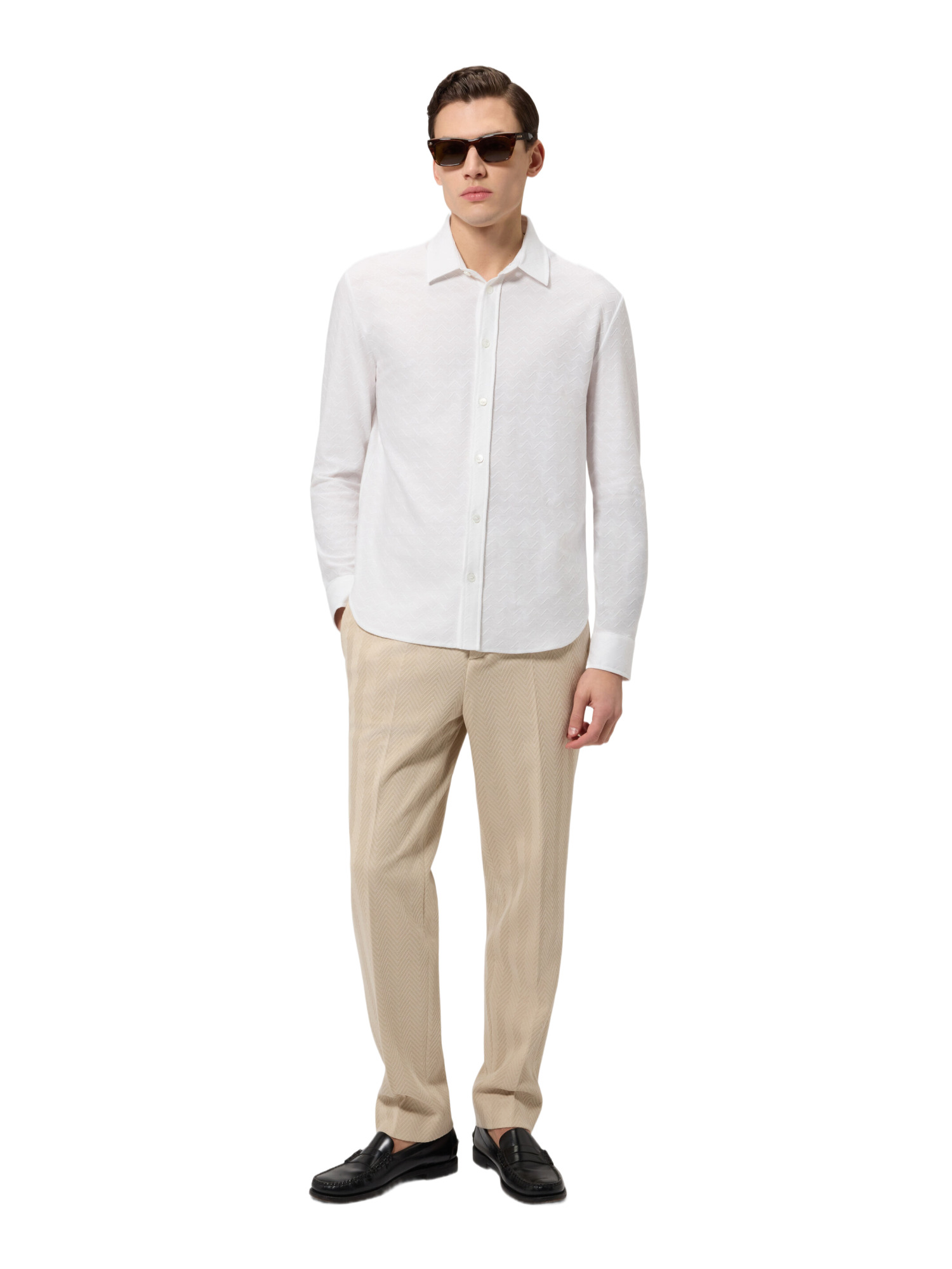 Das MISSONI Freizeithemd zeichnet sich durch seine feine Raschel-Verarbeitung aus, die ein dezentes, Ton-in-Ton gehaltenes Mikro-Zickzack-Muster aufweist. Diese Detailverliebtheit spiegelt die handwerkliche Exzellenz von MISSONI wider und macht jedes Hemd zu einem kleinen Kunstwerk. Der klassische Kent-Kragen fügt eine traditionelle Note hinzu, während die langen Ärmel für eine elegante Silhouette sorgen.