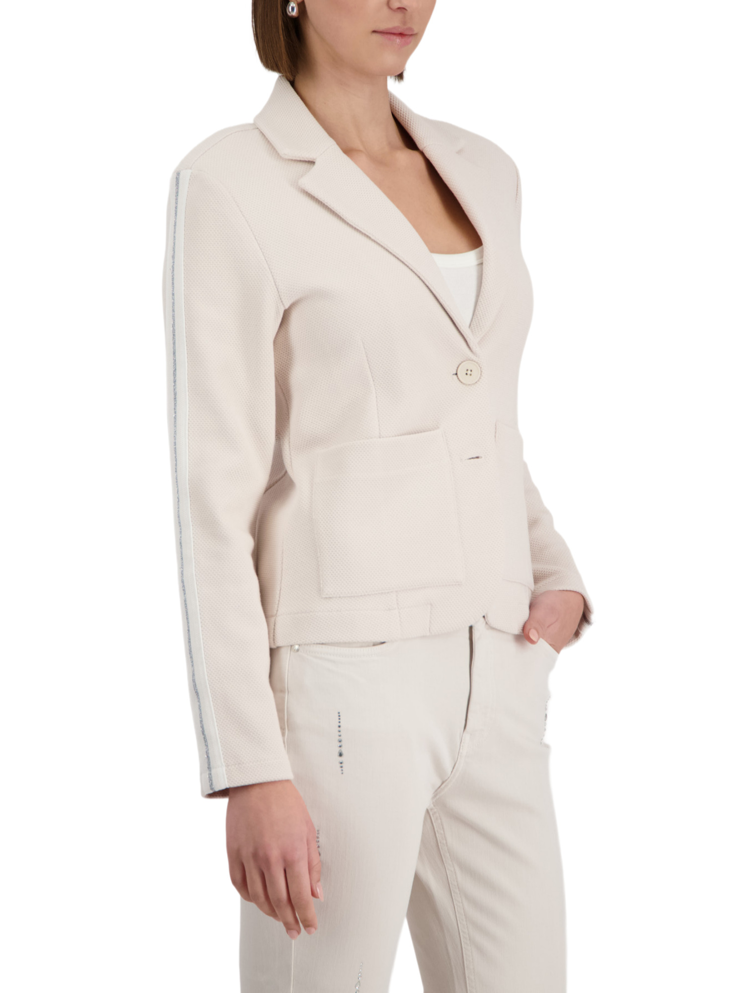 Der Monari Business-Blazer ist aus einer hochwertigen Mischung aus Baumwolle, Modal und Elasthan gefertigt, was ihn nicht nur unglaublich bequem macht, sondern auch für eine perfekte Passform sorgt. Die feinen Lurex-Streifen verleihen dem Blazer einen Hauch von Glanz, der deinem Outfit eine edle Note verleiht, ohne übertrieben zu wirken.