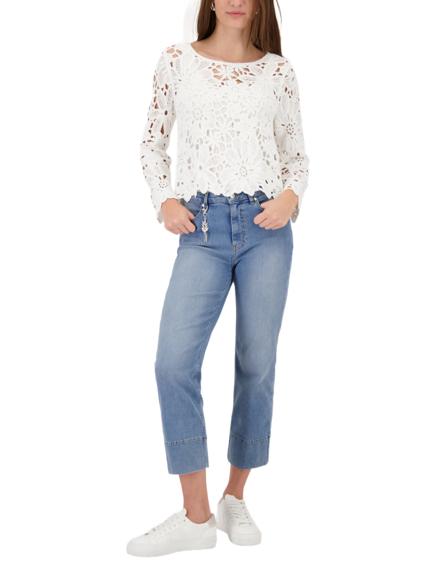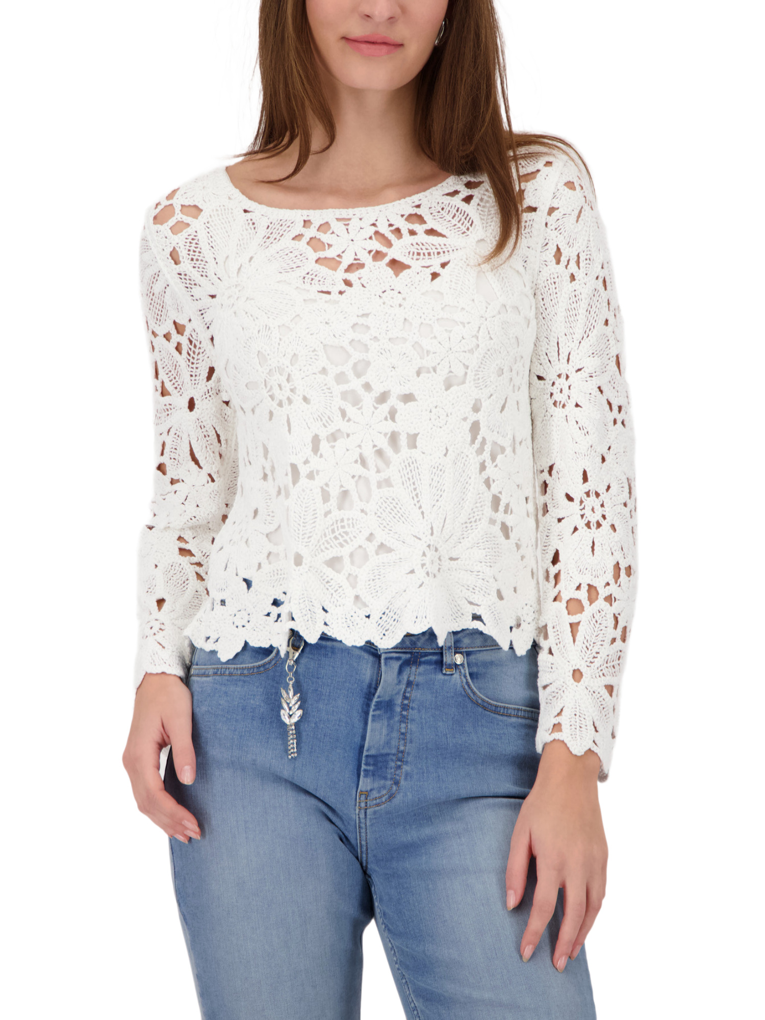 Der Pullover ist aus 100% Viskose gefertigt, was ihn unglaublich weich und angenehm zu tragen macht. Das Highlight dieses Pullovers ist das zauberhafte Cornelly-Muster, das ihm eine strukturierte und interessante Optik verleiht. Der Rundhalsausschnitt und die modischen Langärmel runden das Design ab und sorgen für eine moderne Silhouette.