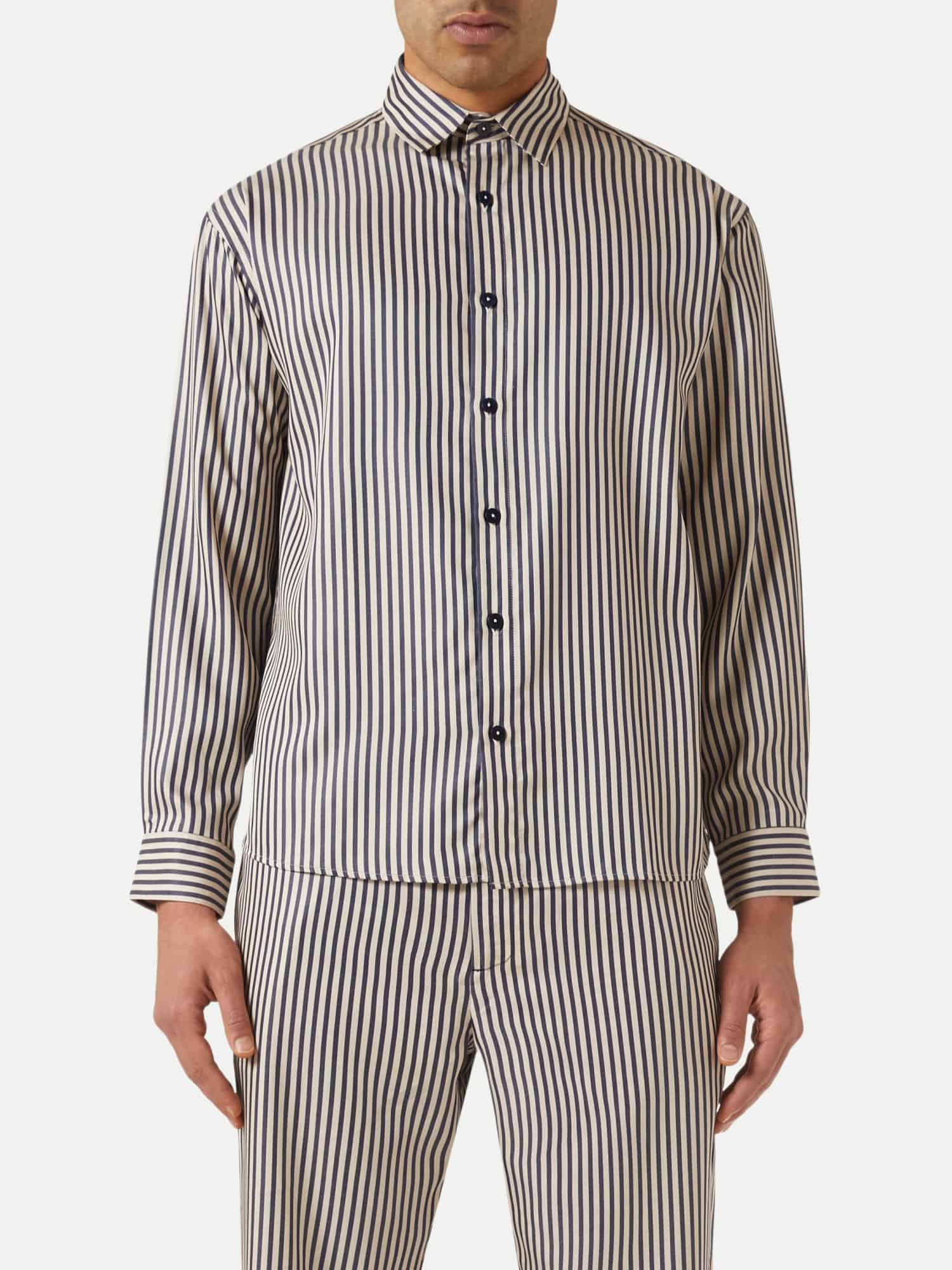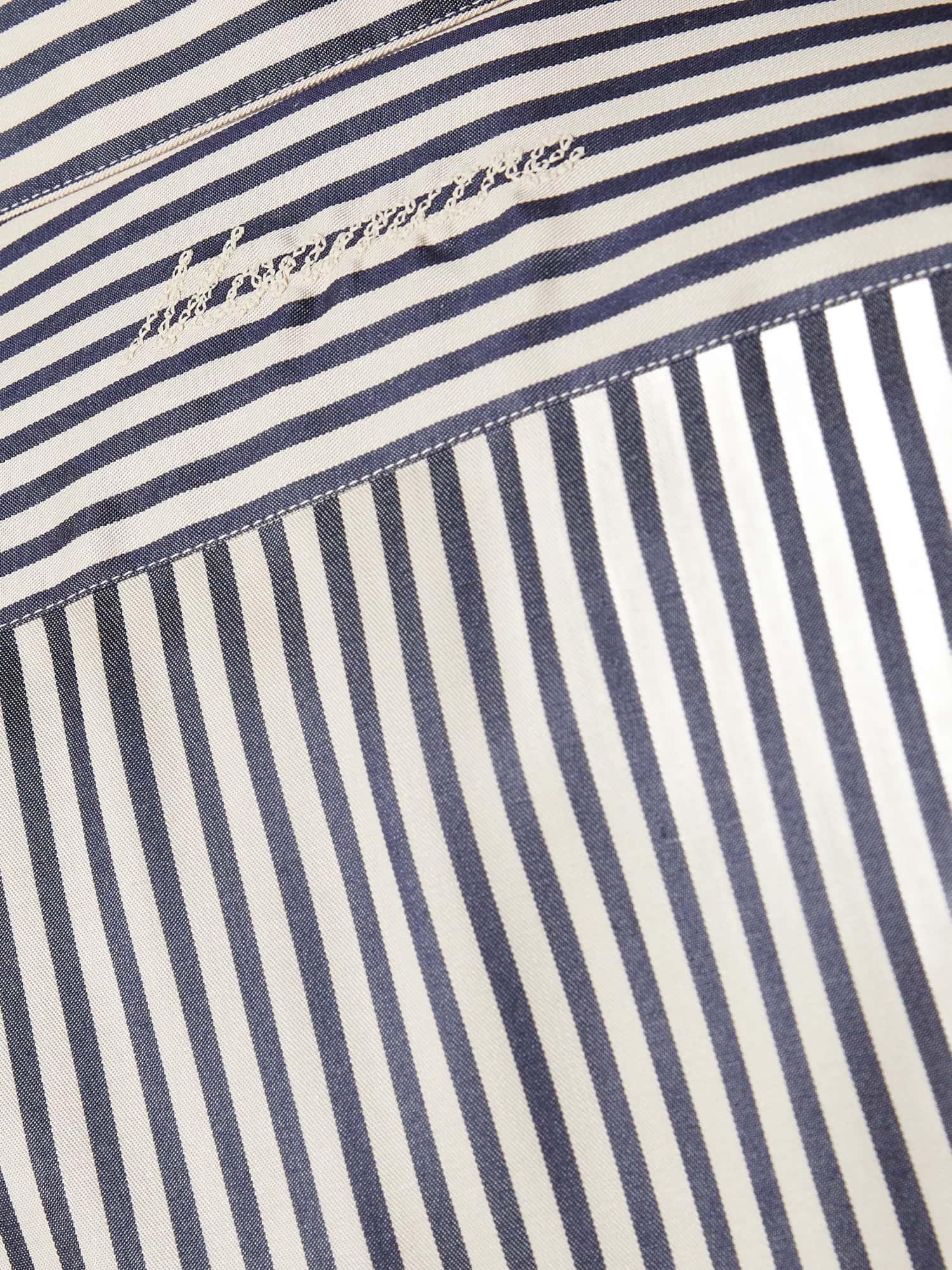 Die leicht lockere Passform des Hemdes ermöglicht es Dir, Dich frei zu bewegen und auch problemlos mehrere Schichten darunter zu tragen. Die klassischen Streifen in Marineblau verleihen dem Shirt eine zeitlose Note, während der Kent-Kragen und die langen Ärmel mit Knopfmanschetten das Design stilvoll abrunden.