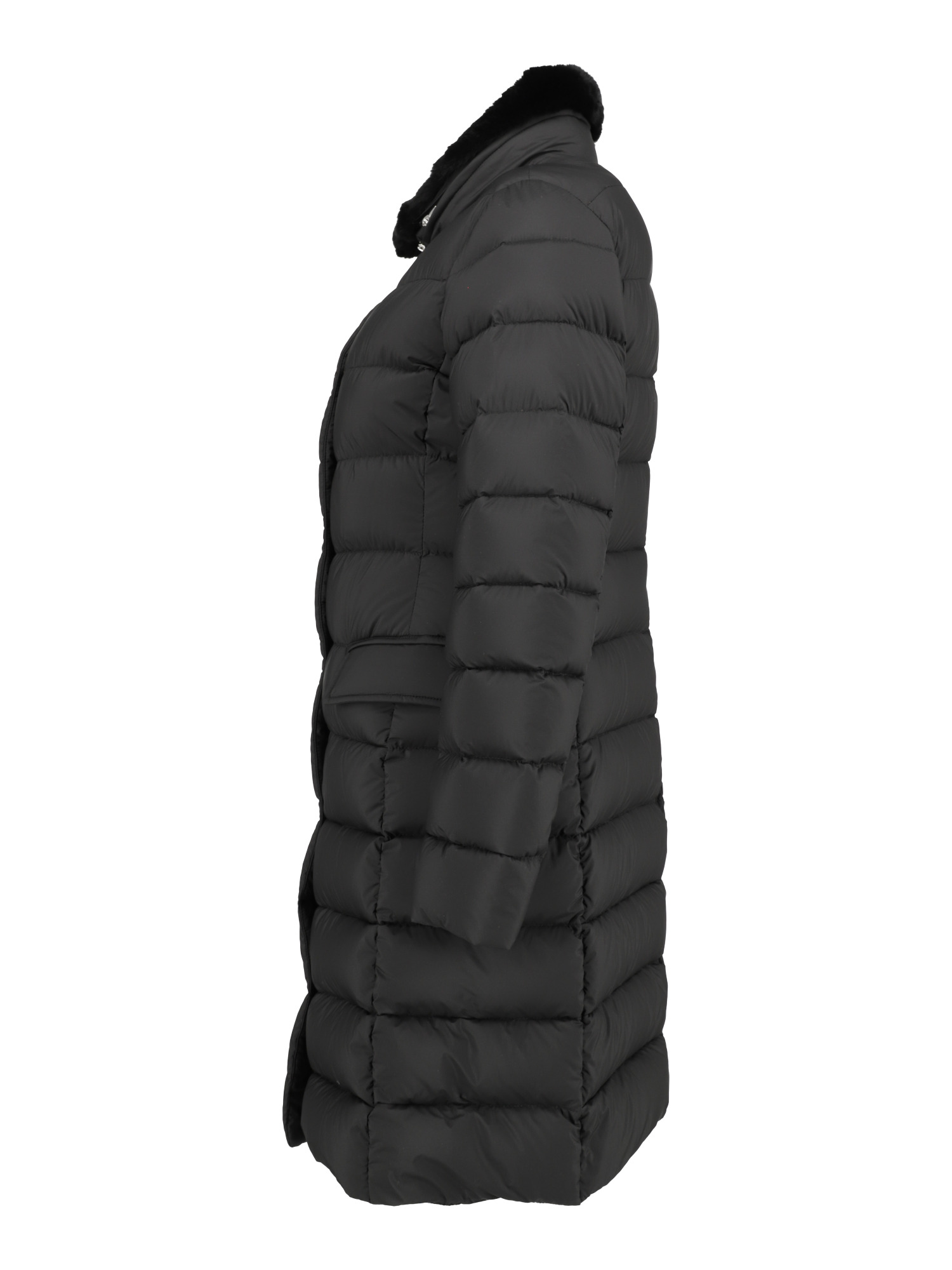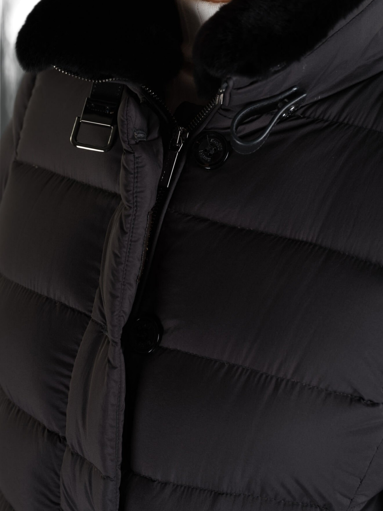 Der Mantel Vetiver-S3 zeichnet sich durch seinen schmalen, taillierten Schnitt aus, der deine Figur gekonnt in Szene setzt. Die Boudin-Steppung, gefüllt mit luxuriösen Gänsedaunen, sorgt für eine optimale Wärmeisolierung, während das leichte, matte Gewebe mit seidigen Texturen und subtilen Falten dem Mantel eine einzigartige Note verleiht. Der abnehmbare Kragen aus Rexkaninchenfell fügt eine zusätzliche Schicht Luxus hinzu und bietet vielseitige Trageoptionen je nach Wetter und Anlass.