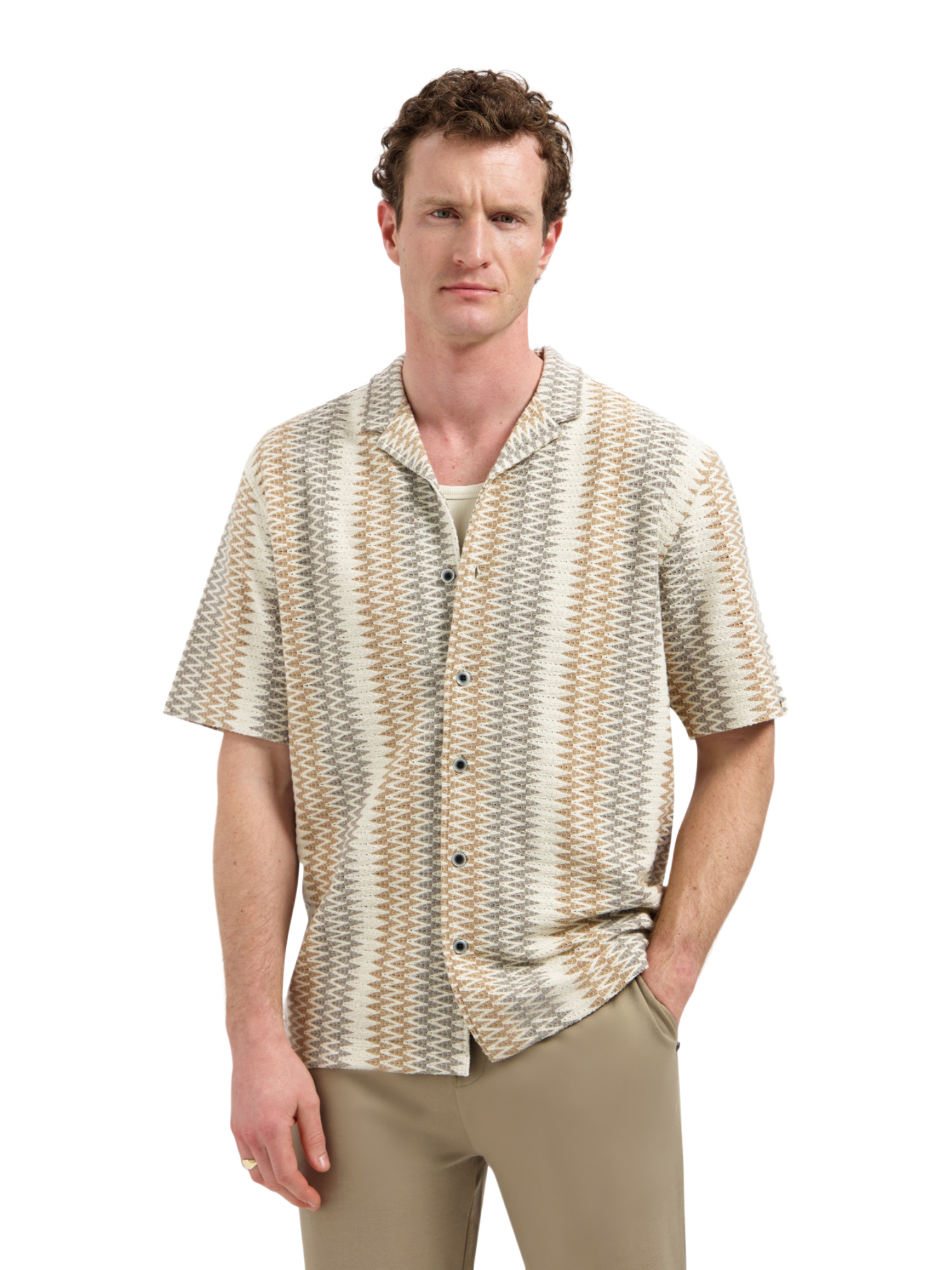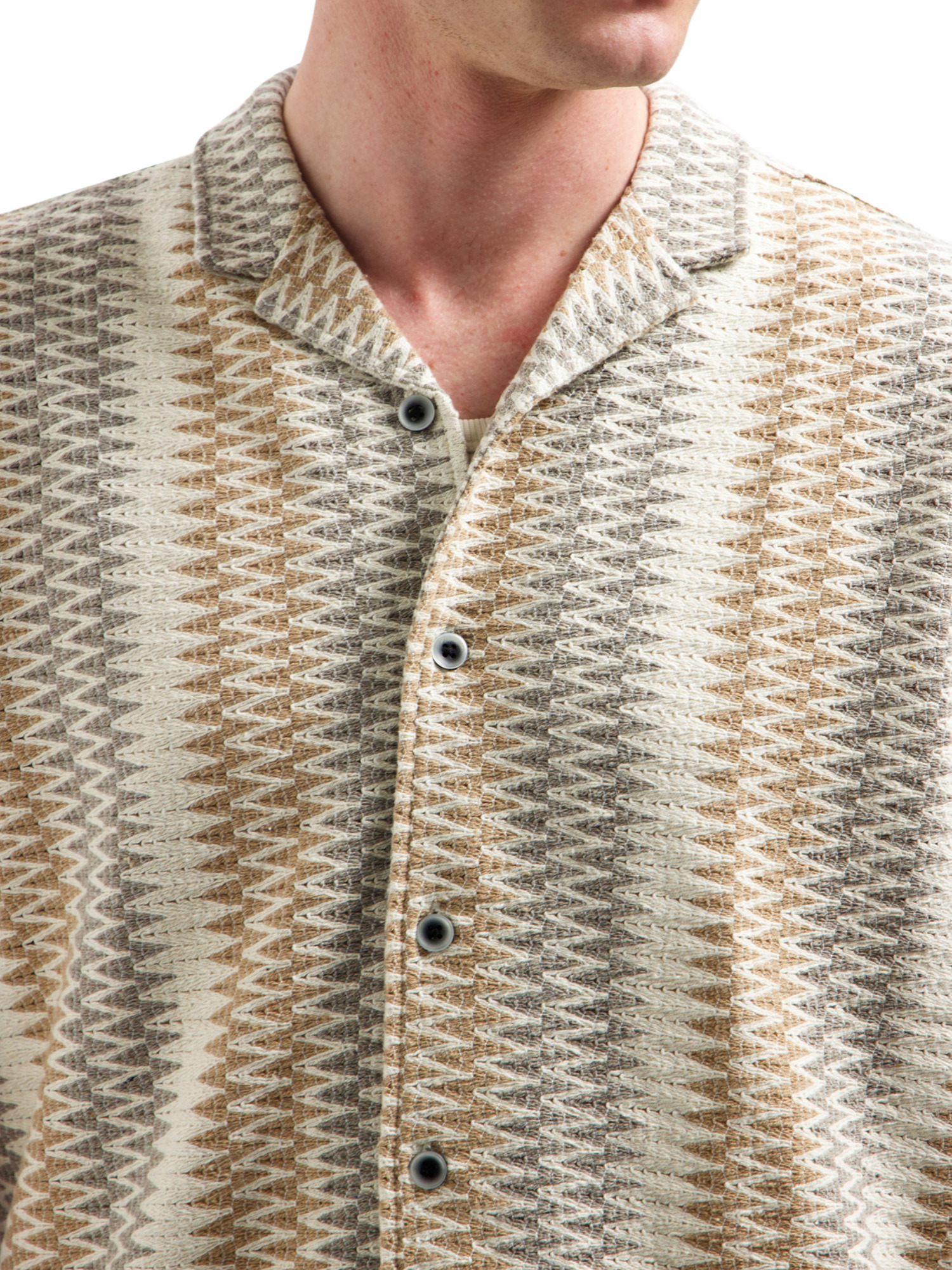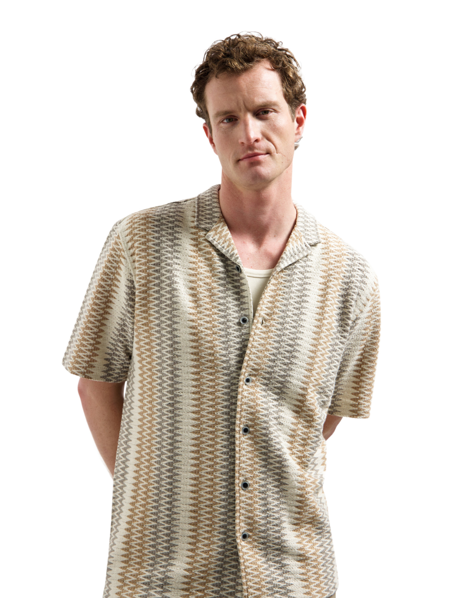 Das auffällige Jacquard-Zickzackmuster sorgt dafür, dass du aus der Masse herausstichst. Der Allover-Print verleiht dem Hemd eine dynamische Note, die deinem Outfit einen interessanten Twist gibt.