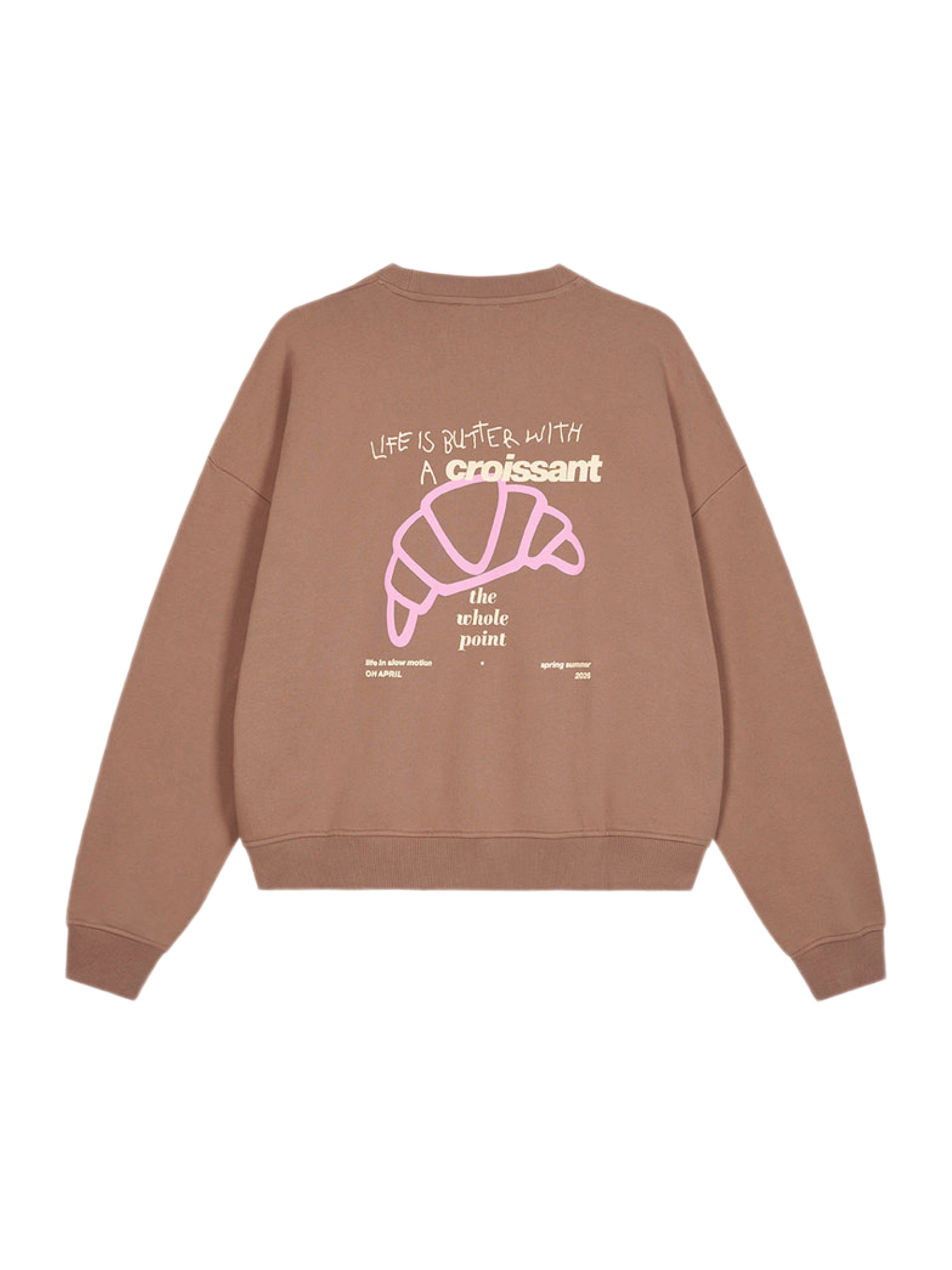 Hergestellt aus 100% Baumwolle, bietet das Sweatshirt Croissant ein weiches und angenehmes Tragegefühl. Der Oversized, Boyfriend-Schnitt sorgt für eine lässige Passform, die Bewegungsfreiheit und Komfort den ganzen Tag über garantiert. Ob zu Hause entspannen oder für einen casual Stadtbummel – dieses Sweatshirt ist dein perfekter Begleiter.
